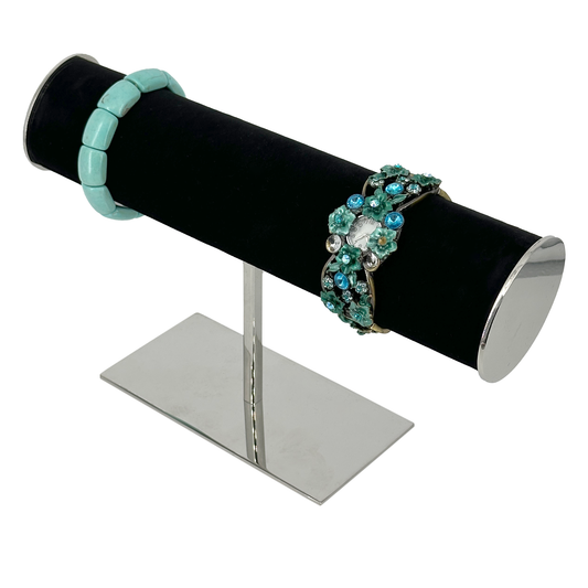 Black Velvet and Metal Round T-Bar Bracelet Display