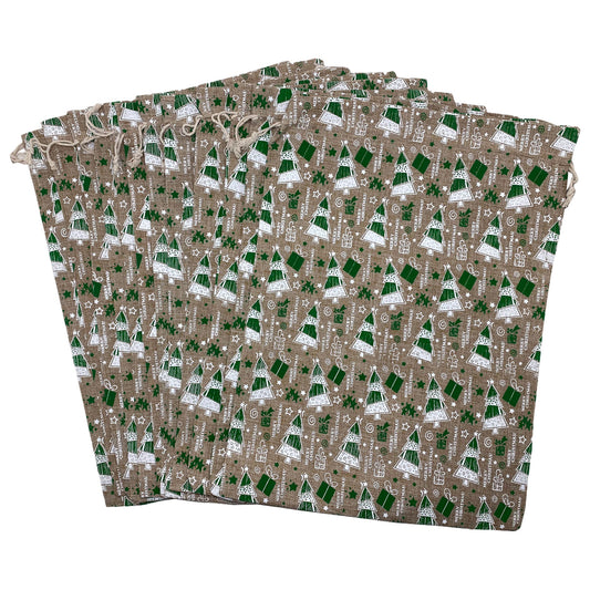 12" x 16" Jute Burlap Green Christmas Tree Drawstring Gift Bags