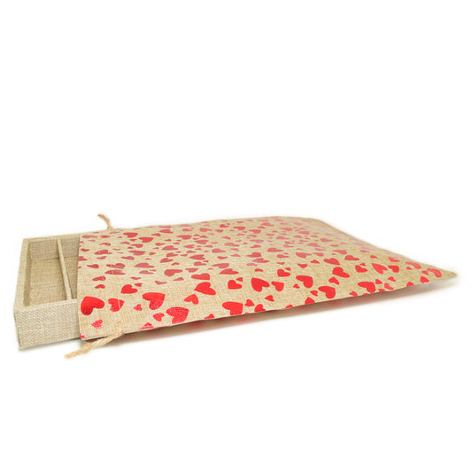 12" x 16" Jute Burlap Red Heart Drawstring Gift Bags