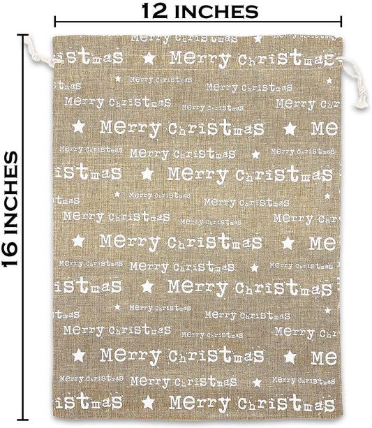 12" x 16" Jute Burlap White Merry Christmas Drawstring Gift Bags