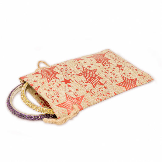 4" x 6" Jute Burlap Red Star Drawstring Gift Bags