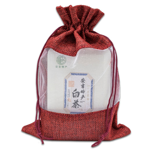 6 1/4" x 9" Linen Burlap and Sheer Organza Maroon Gift Bag
