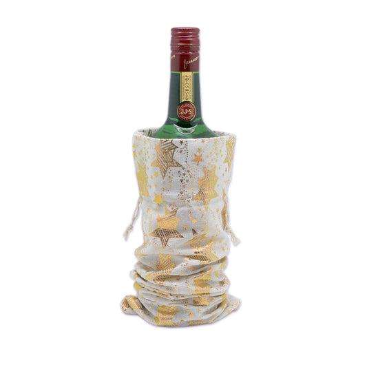 6" x 14" Cotton Muslin Gold Star Wine Bottle Drawstring Gift Bags