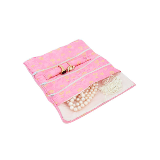 11 1/2" x 8 1/2" Pink Floral Pattern Jewelry Case Roll