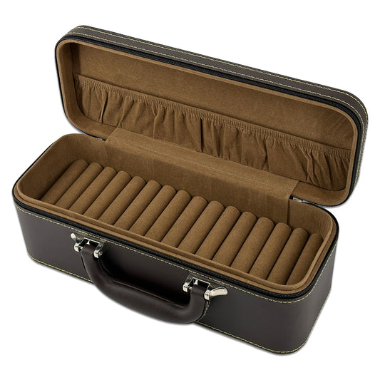 12" x 4 1/2" Brown Leatherette Jewelry Travel Case