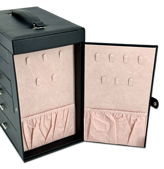 13" x 11" Black Leatherette 5 Drawer Jewelry Travel Storage Case