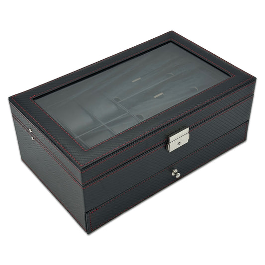 13" x 5" x 3 1/4" Black Carbon Fiber Leatherette Watch and Bracelet Display Case