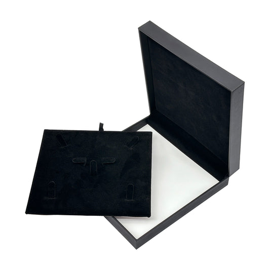 7 1/2" x 7 1/2" Deluxe Black Leatherette Silk Grain Combo Jewelry Box