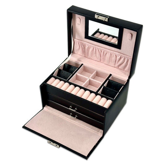 7" x 5 1/2" Black Leatherette 2 Drawer Jewelry Travel Storage Case