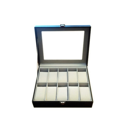 Black leather-Glass Top Watch Carrying Case