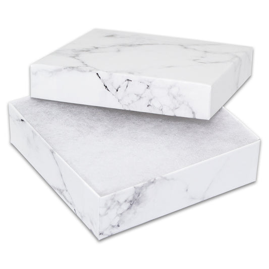 5 7/16" x 3 15/16" x 1" Marble White Cotton Filled Paper Box
