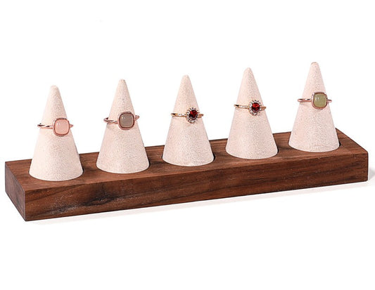 5 Finger Cream Microfiber Walnut Base Ring Display