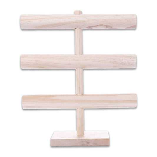 3 Tier Natural Wood Round T-Bar Jewelry Display