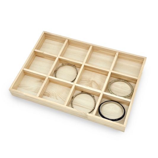 12 1/2" x 5 1/2" x 1 3/4" Natural Wood Jewelry Display Tray with Removable Dividers