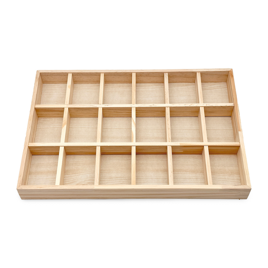 13 3/4" x 9 1/2" Natural Pine 12 Compartment Tray with 3" x 3" Velvet Pillows