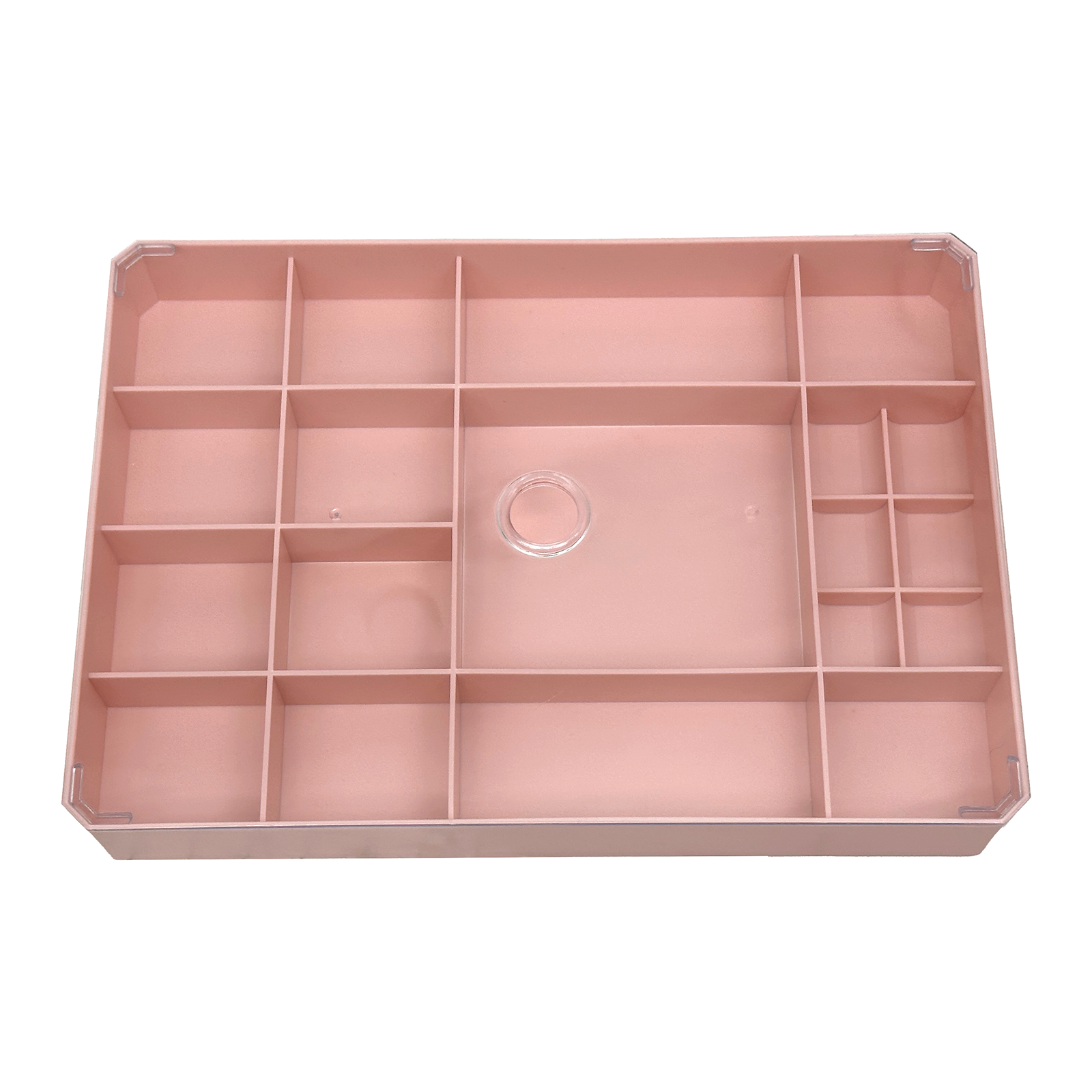 10 1/4" x 7 1/4" Pink Plastic Compartment Storage Case with Lid