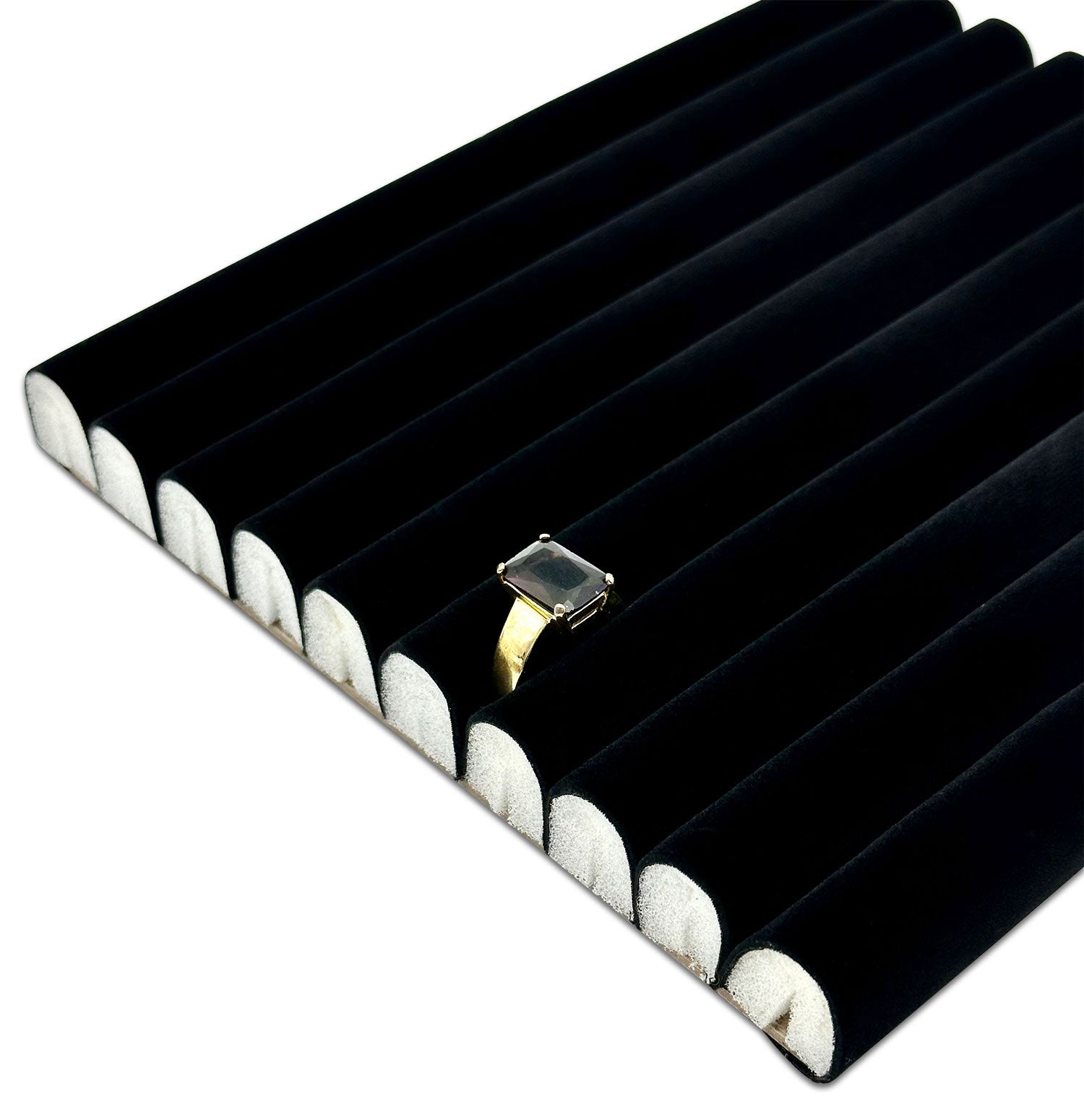 - Showcase your rings with this black velvet ring foam insert.