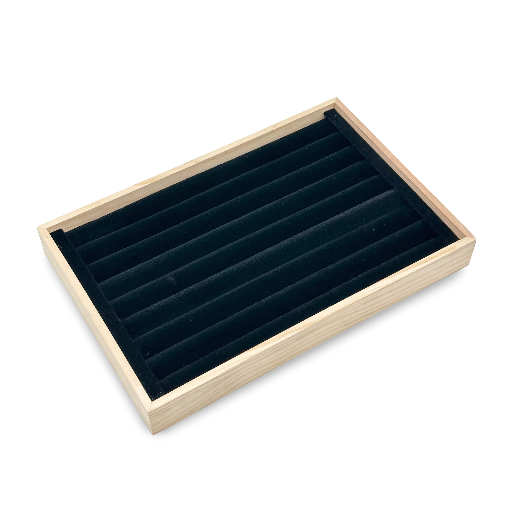 11 3/4" x 7 3/4" Wood Black Velvet 9 Roll Ring Display Tray