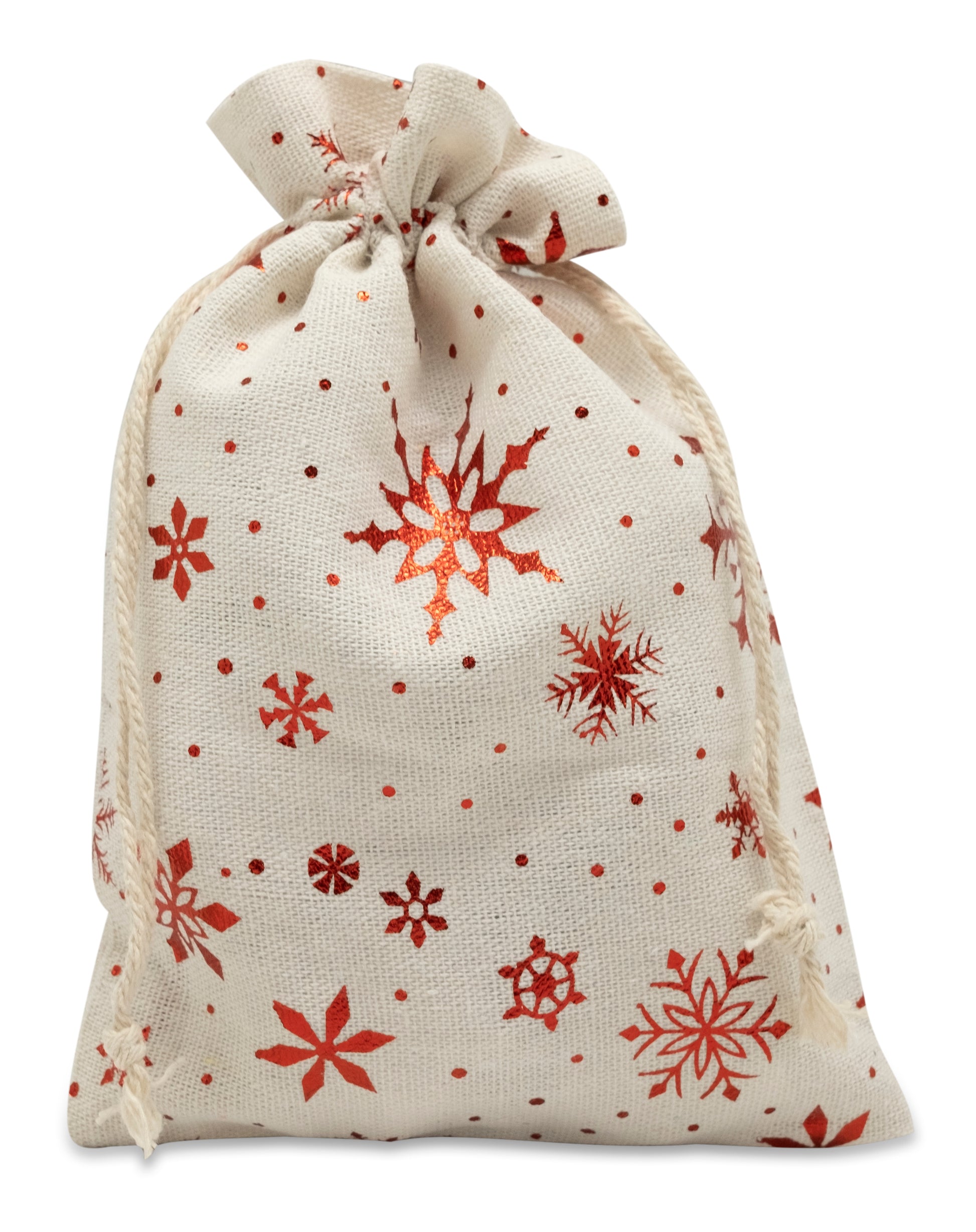 12" x 16" Cotton Muslin Red Snowflake Drawstring Gift Bags