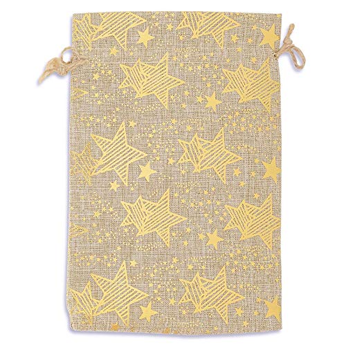 12" x 16" Jute Burlap Gold Star Drawstring Gift Bags