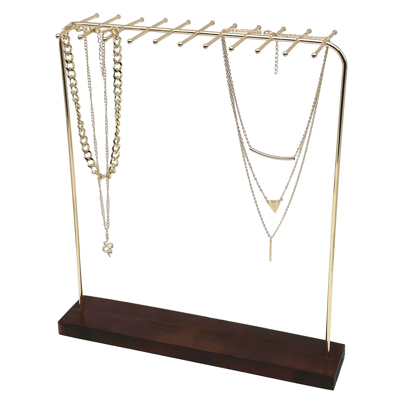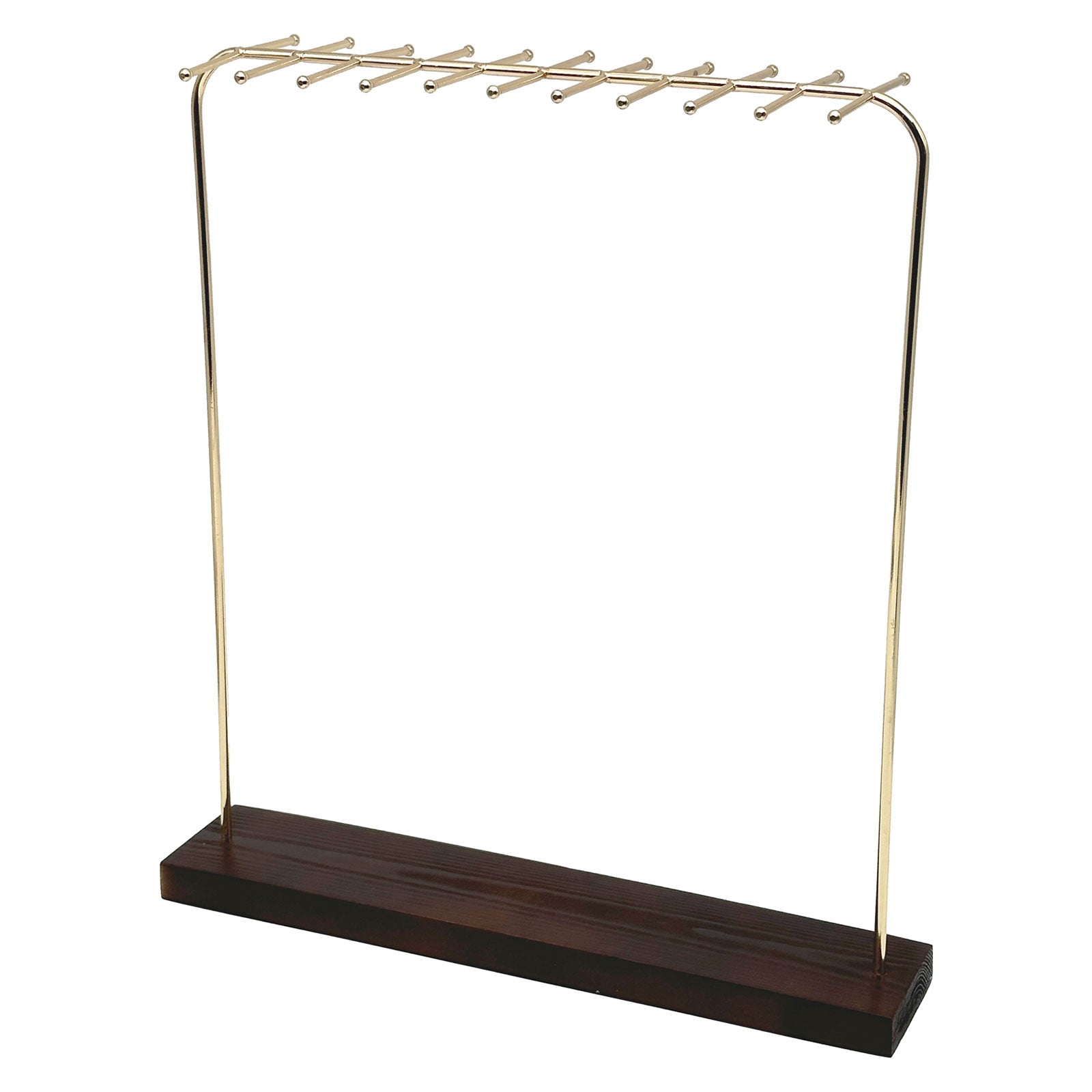 13 1/2" x 15" Two-Sided Gold Accent and Walnut Wood Necklace Display Stand