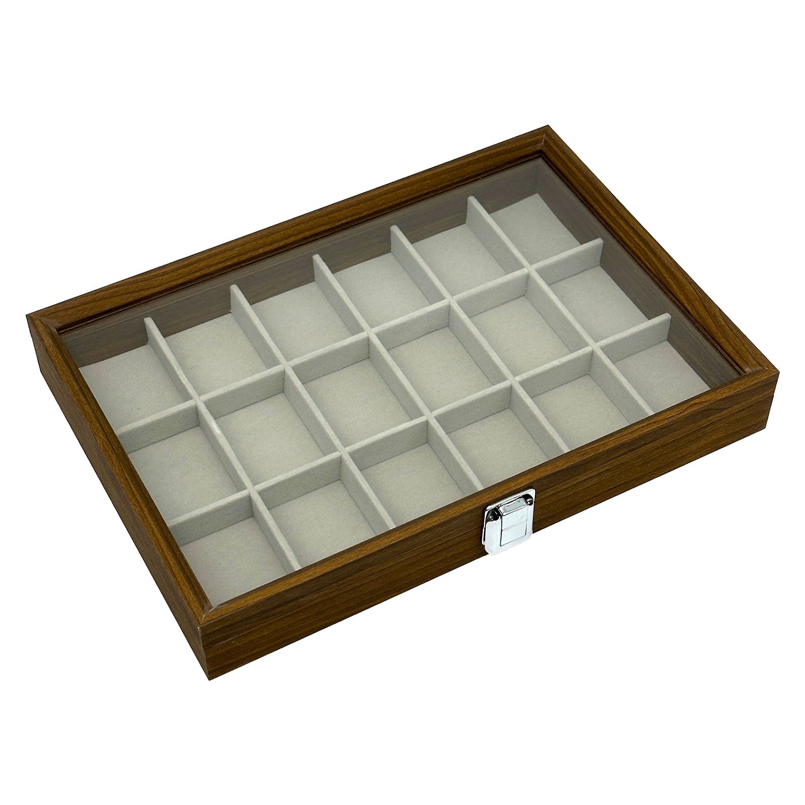 13 3/4" x 9 1/2" Dark Oak 18 Compartment Display Case with Glass Top