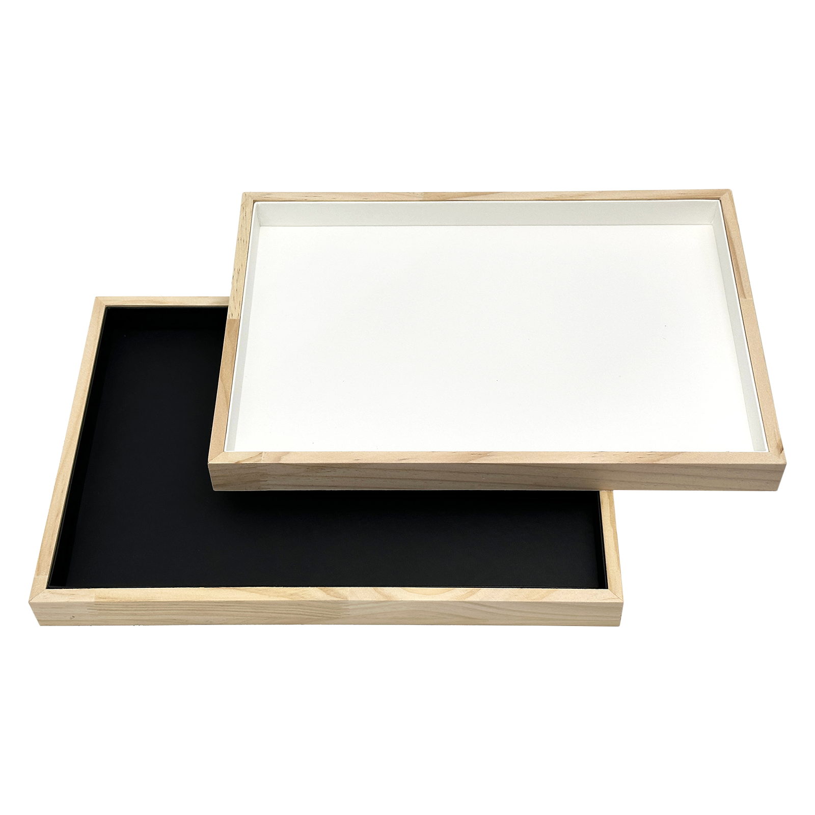 14" x 9 1/2" Pine Wood and Black Leatherette Jewelry Display Tray