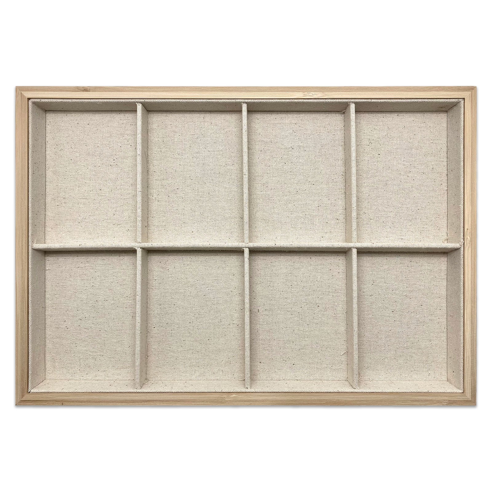 14" x 9 1/2" Wood and Burlap 8 Compartment Jewelry Display Tray