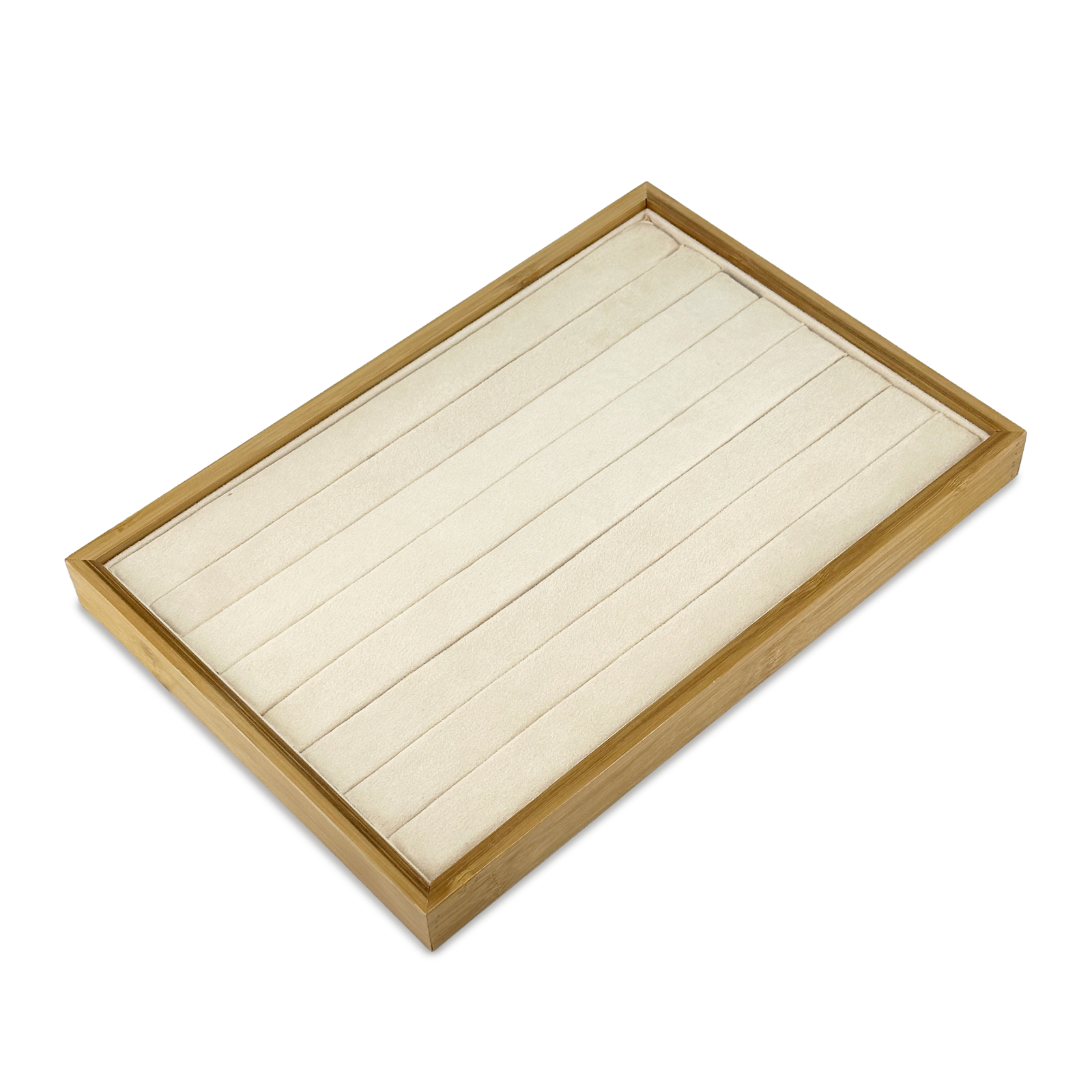 14" x 9 1/2" Wood and Suede 8 Roll Ring Display Tray