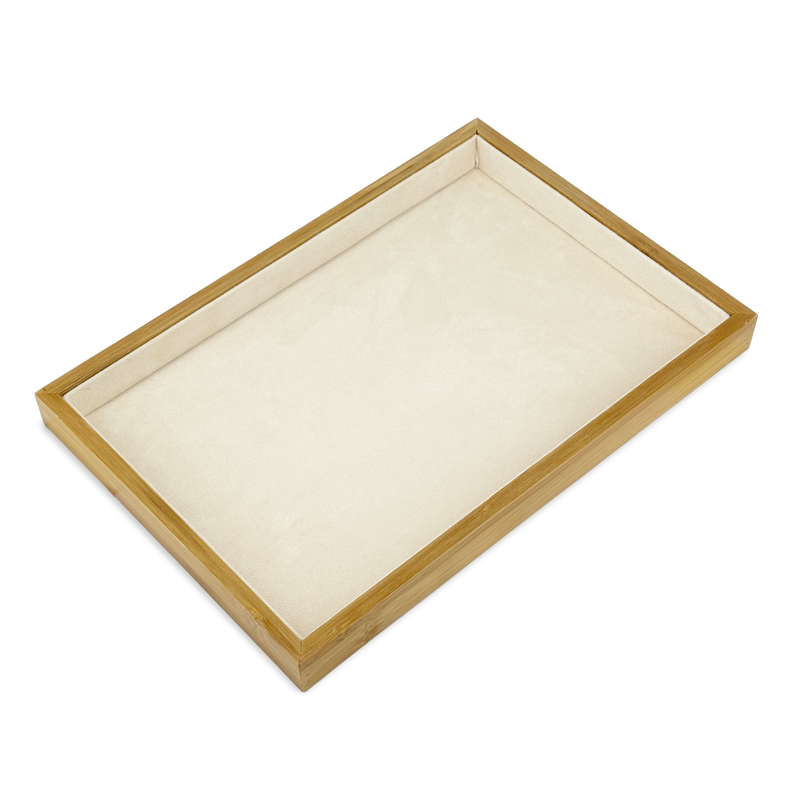 14" x 9 1/2" Wood and Suede Jewelry Display Utility Tray