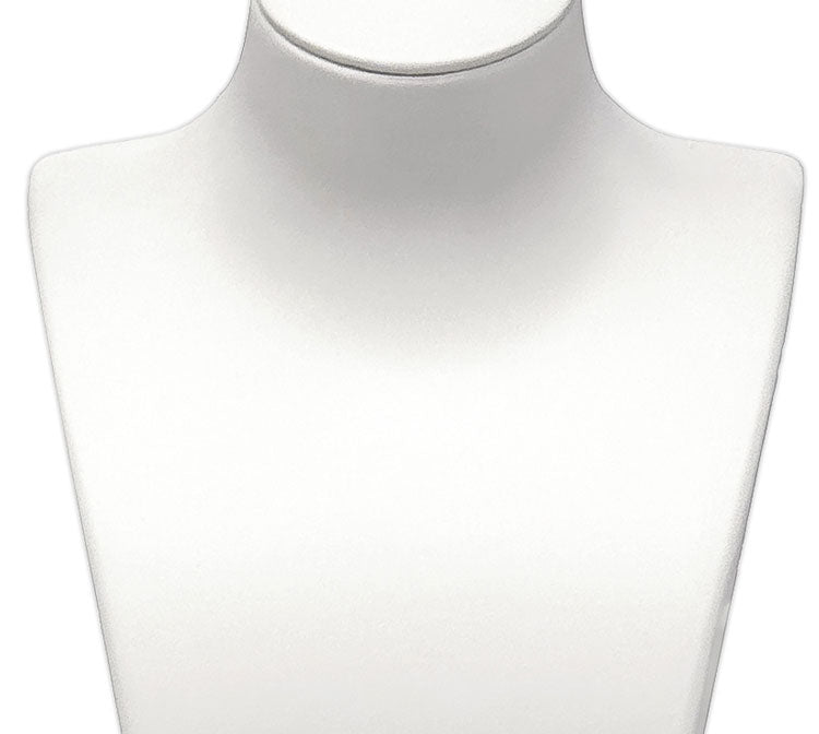 - A sleek white necklace bust display with a sturdy base.