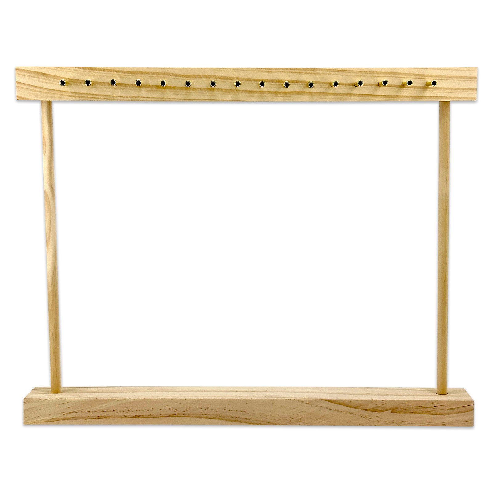 - An elegant natural wood display with 32 pegs for necklaces or bracelets.