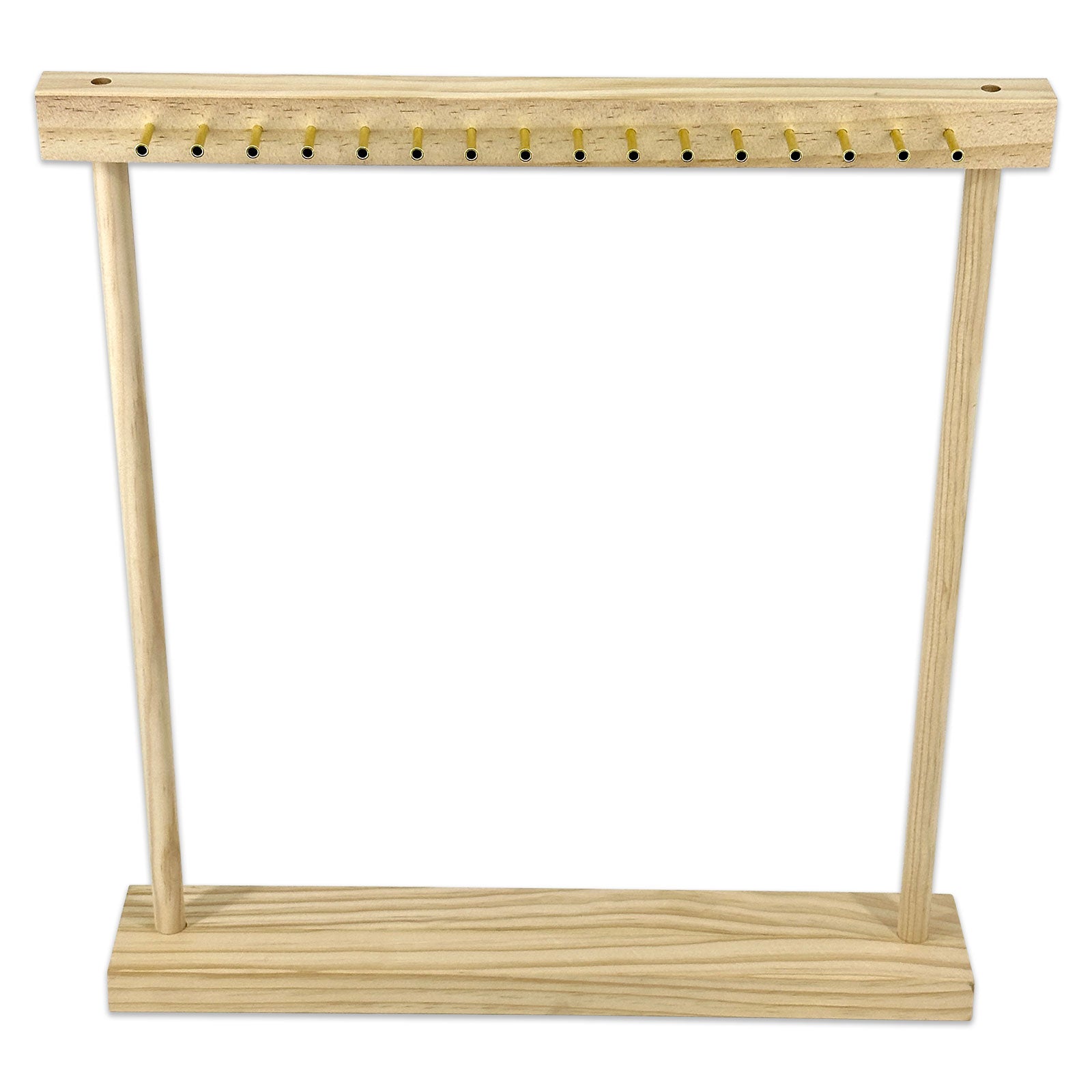 - An elegant natural wood display with 32 pegs for necklaces or bracelets.