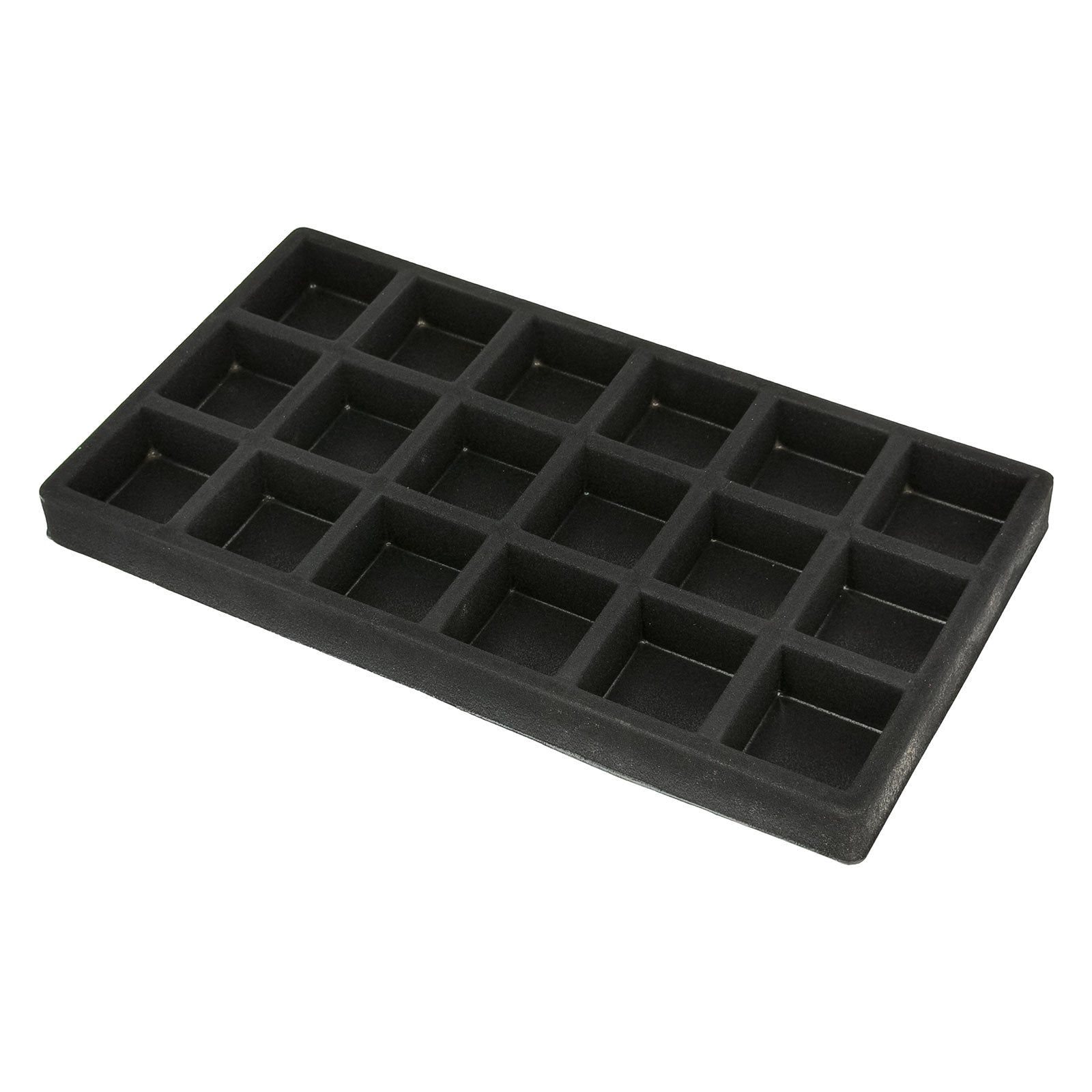 - An 18 compartment black flocked tray insert that fits standard sized trays.