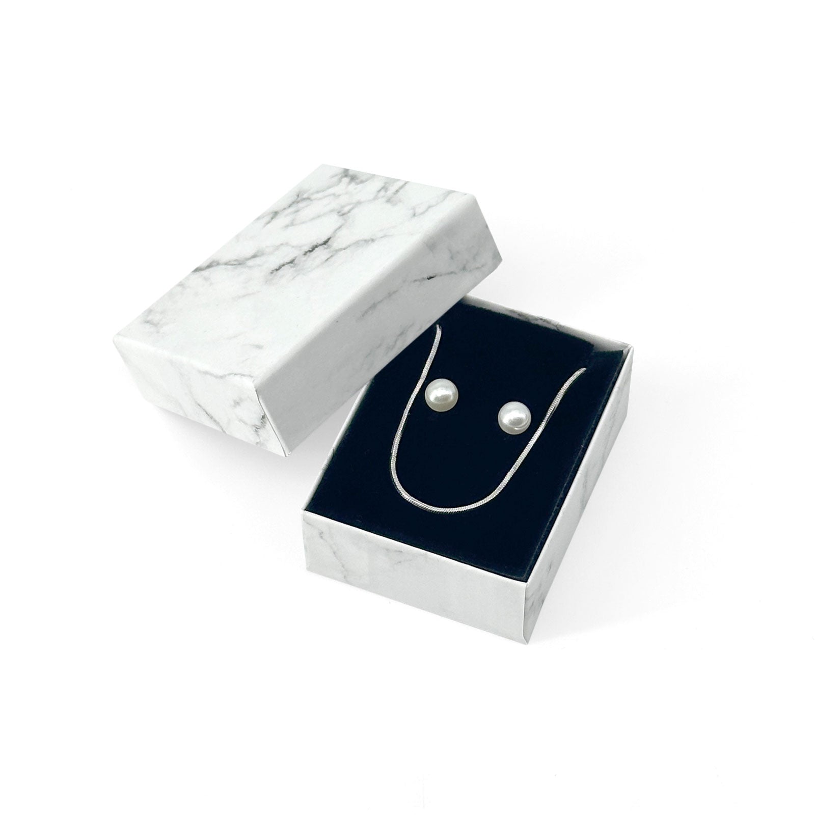 2 1/8" x 1 5/8" White Marble Paper Earring Box with Black Foam Insert