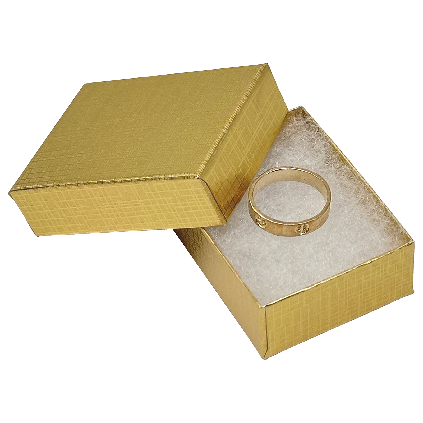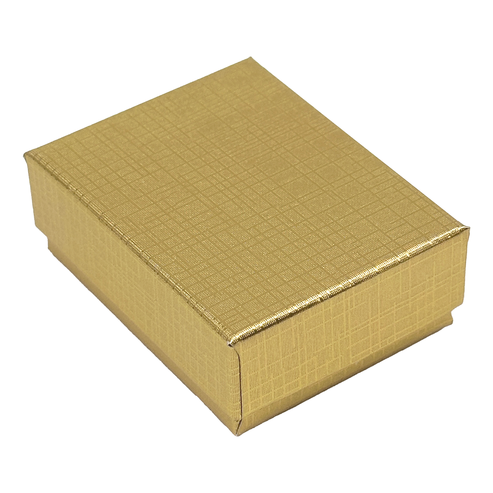2 1/8" x 1 5/8" x 3/4" Gold Linen Pattern Cotton Filled Paper Box