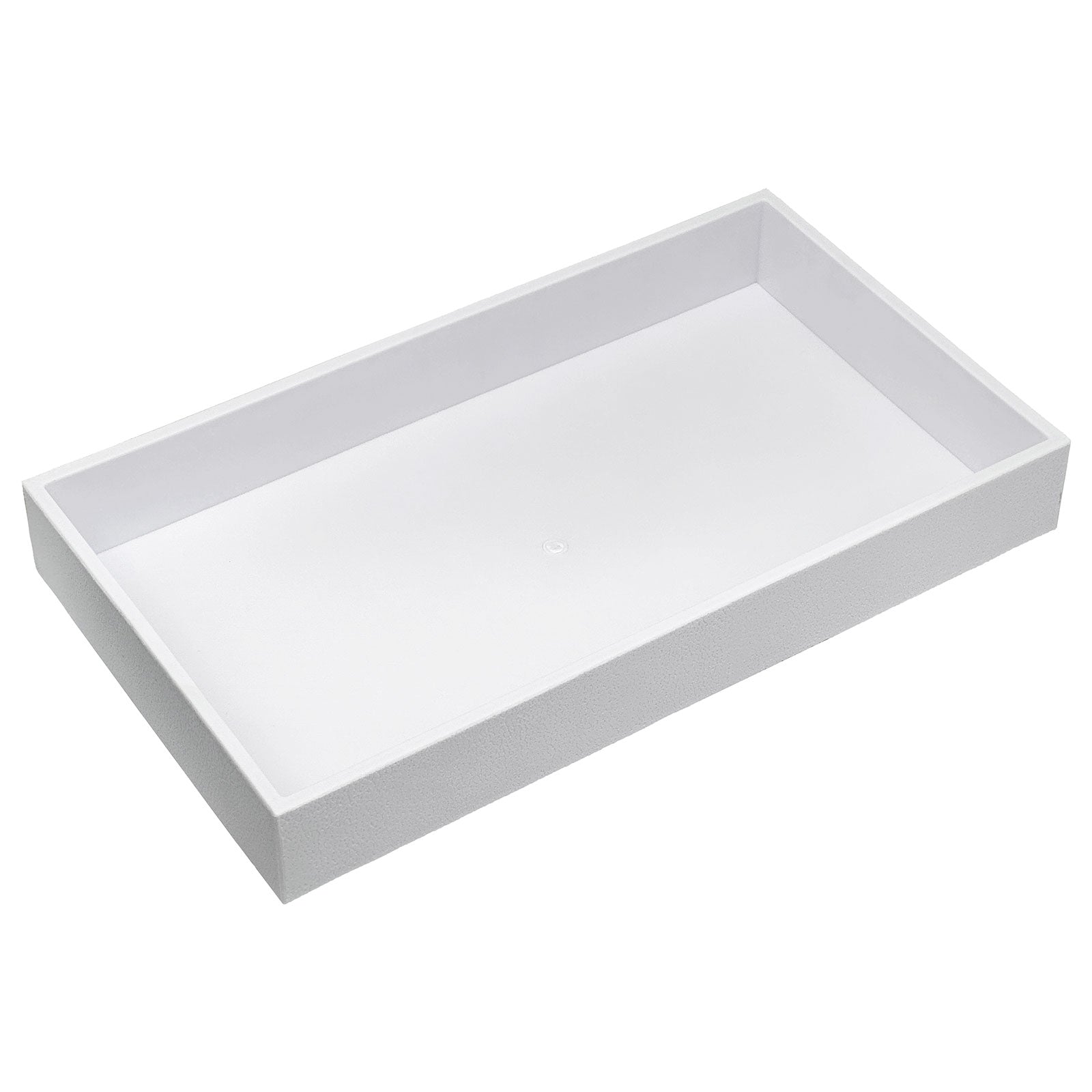 - Organize your jewelry and accessories with this white stackable plastic tray.