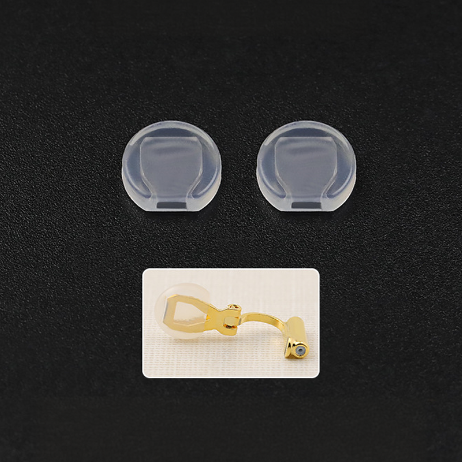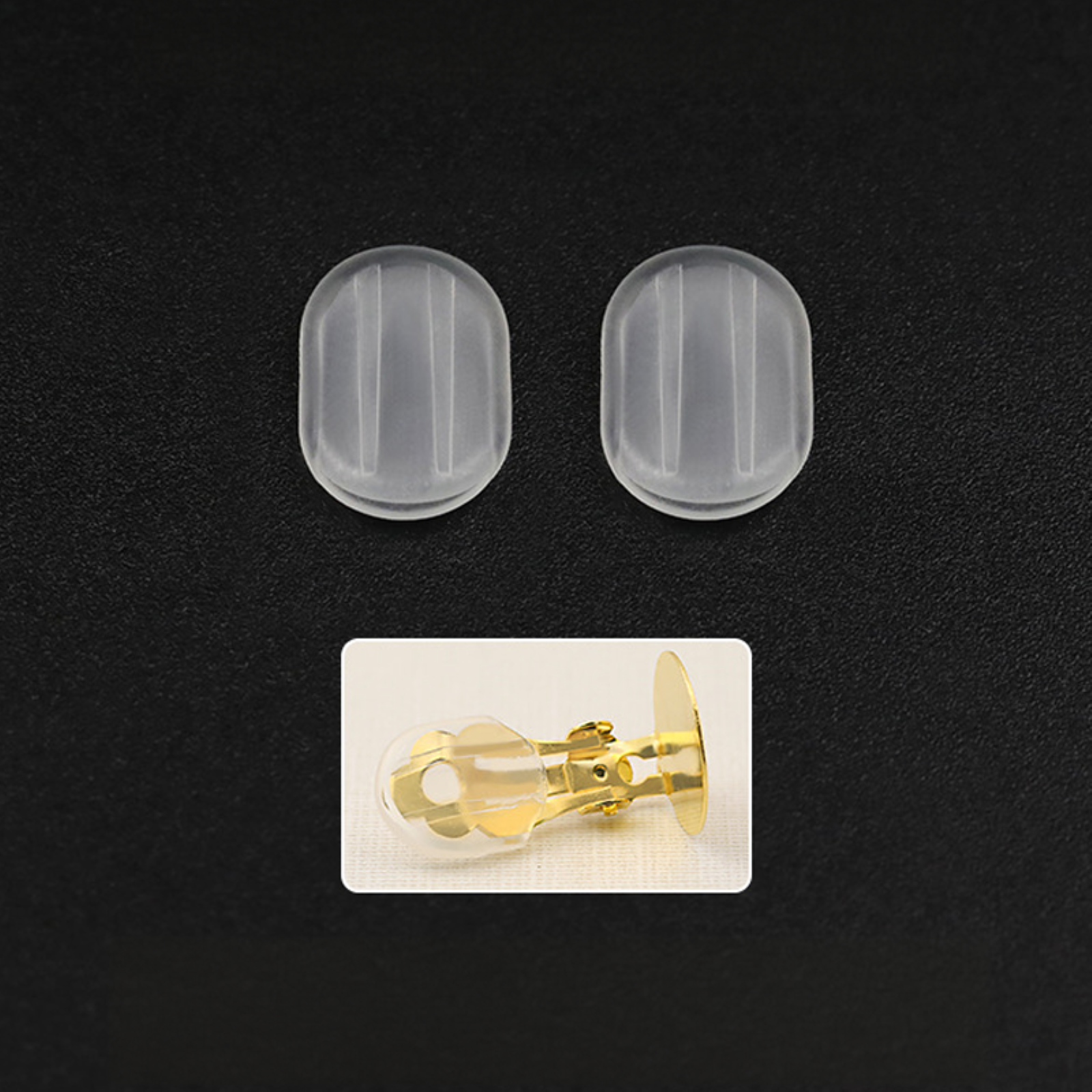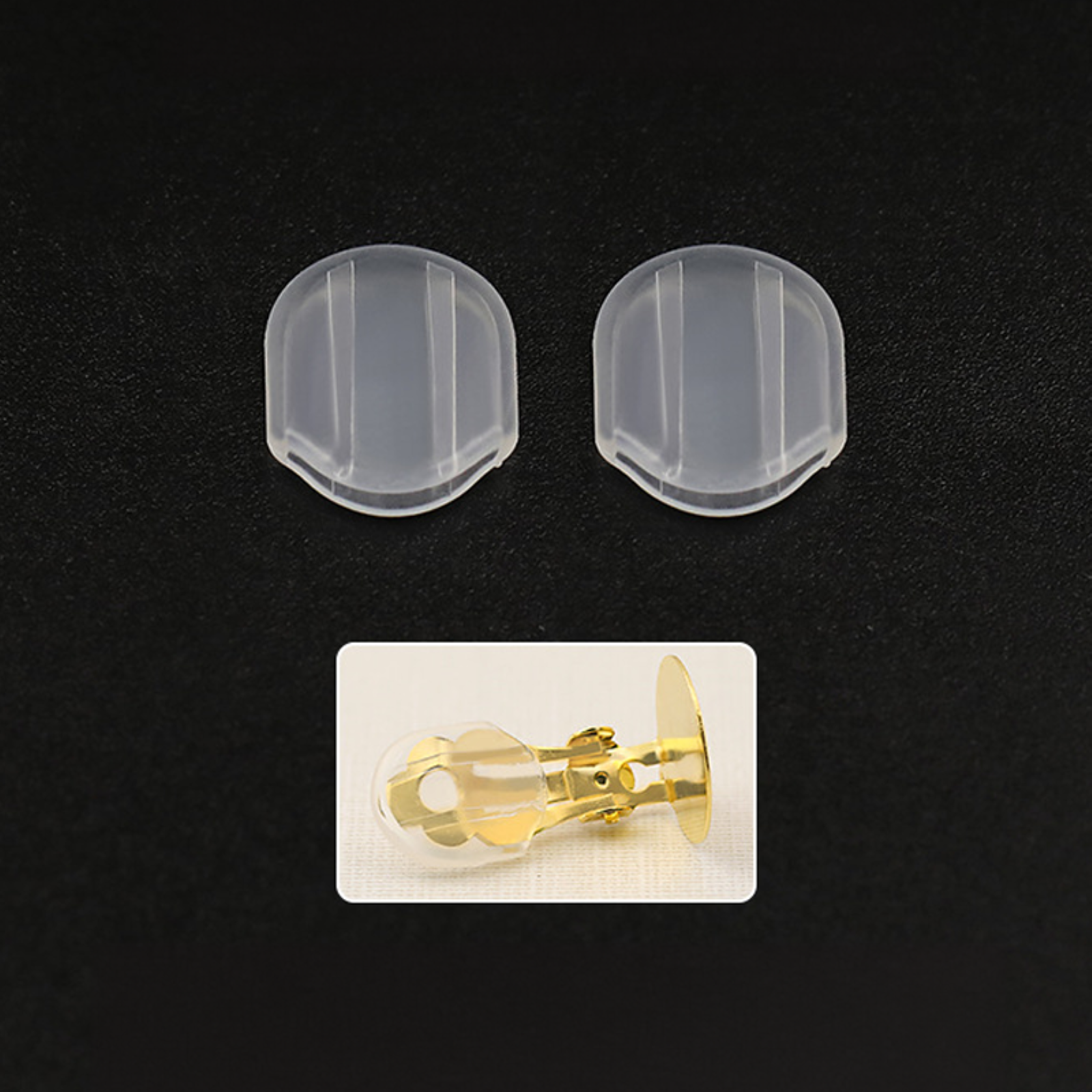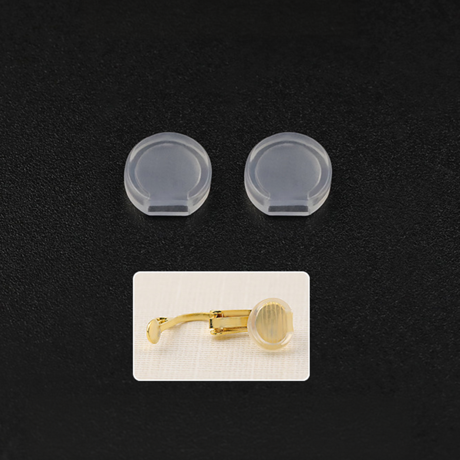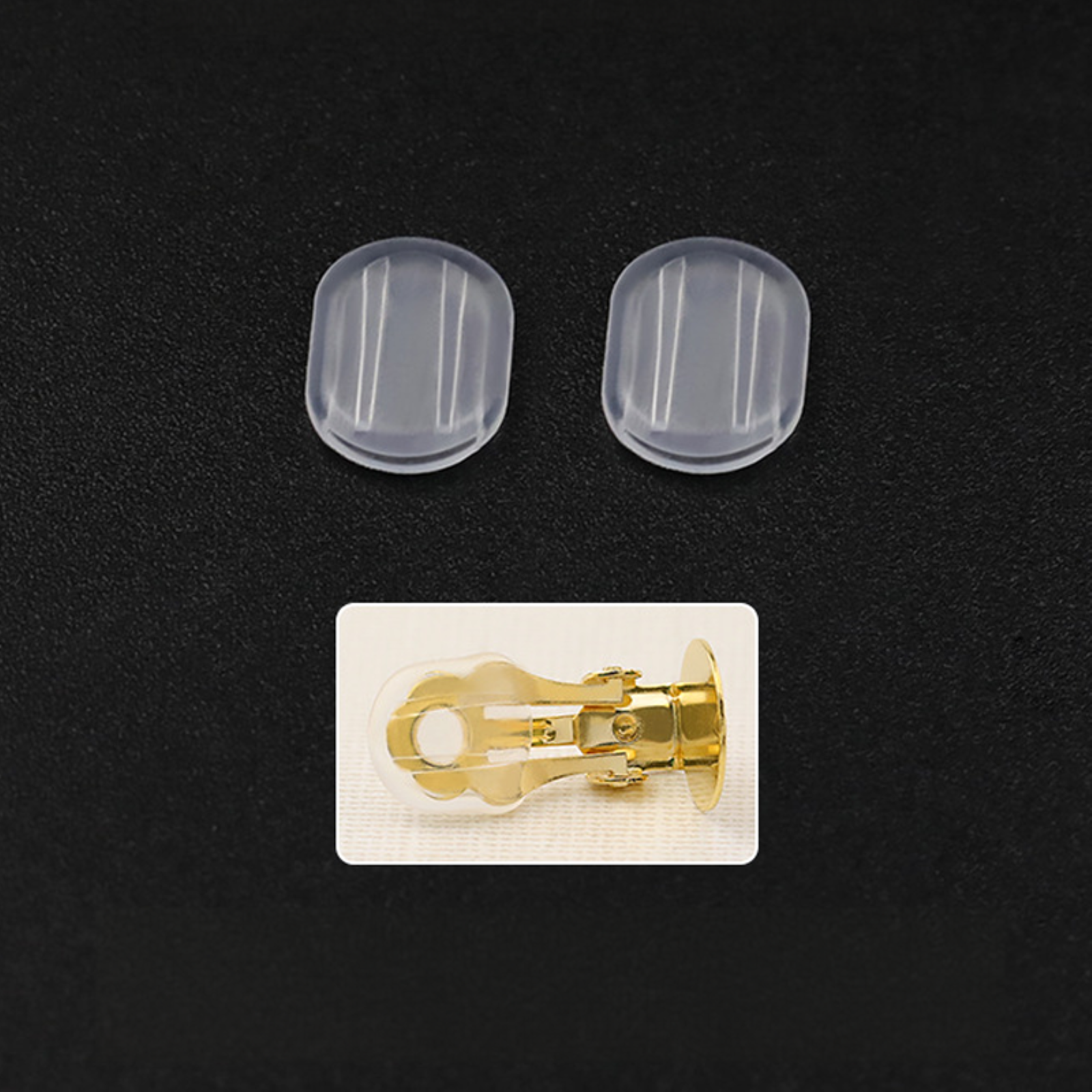 - Pack of 20 silicone pad backs for clip-on earrings.