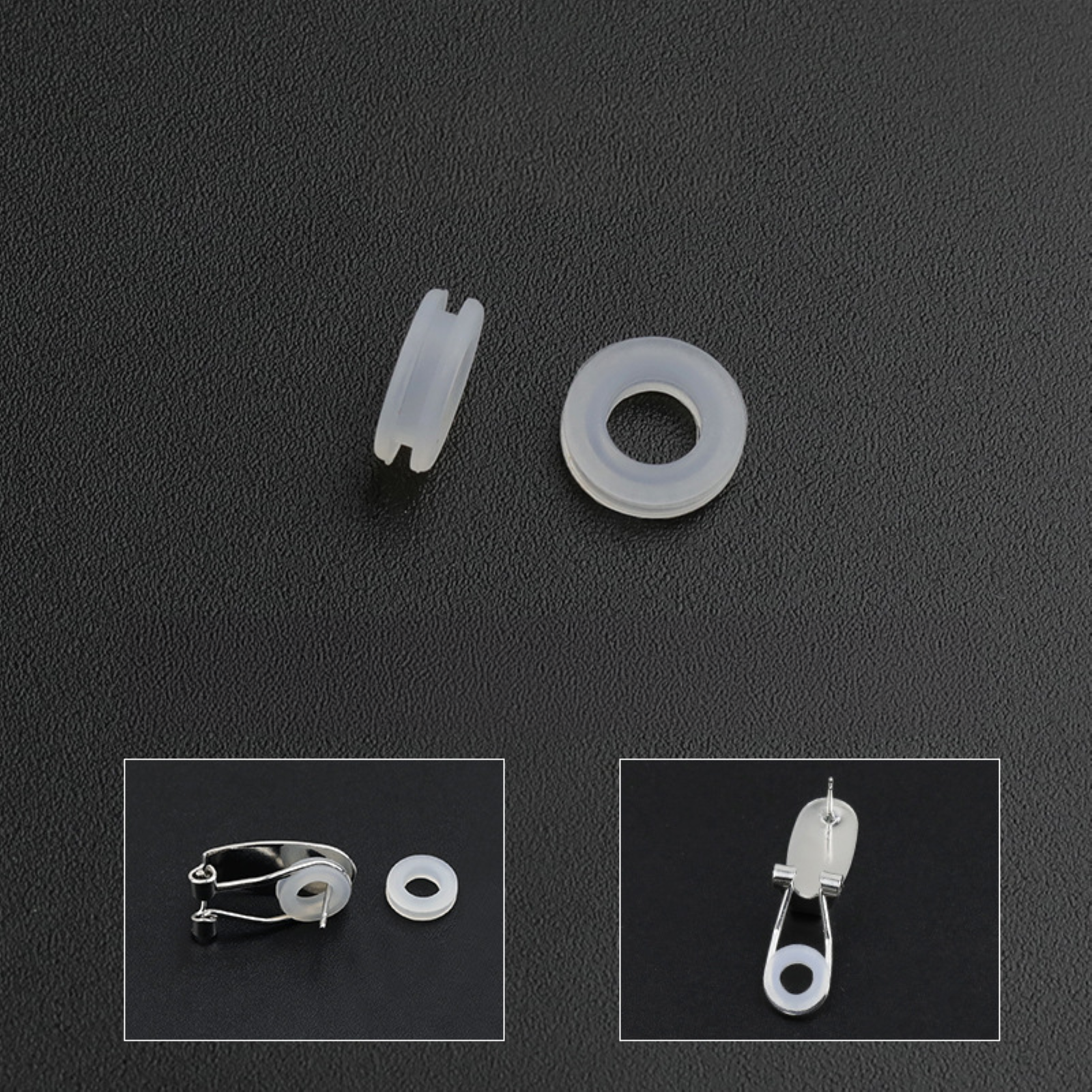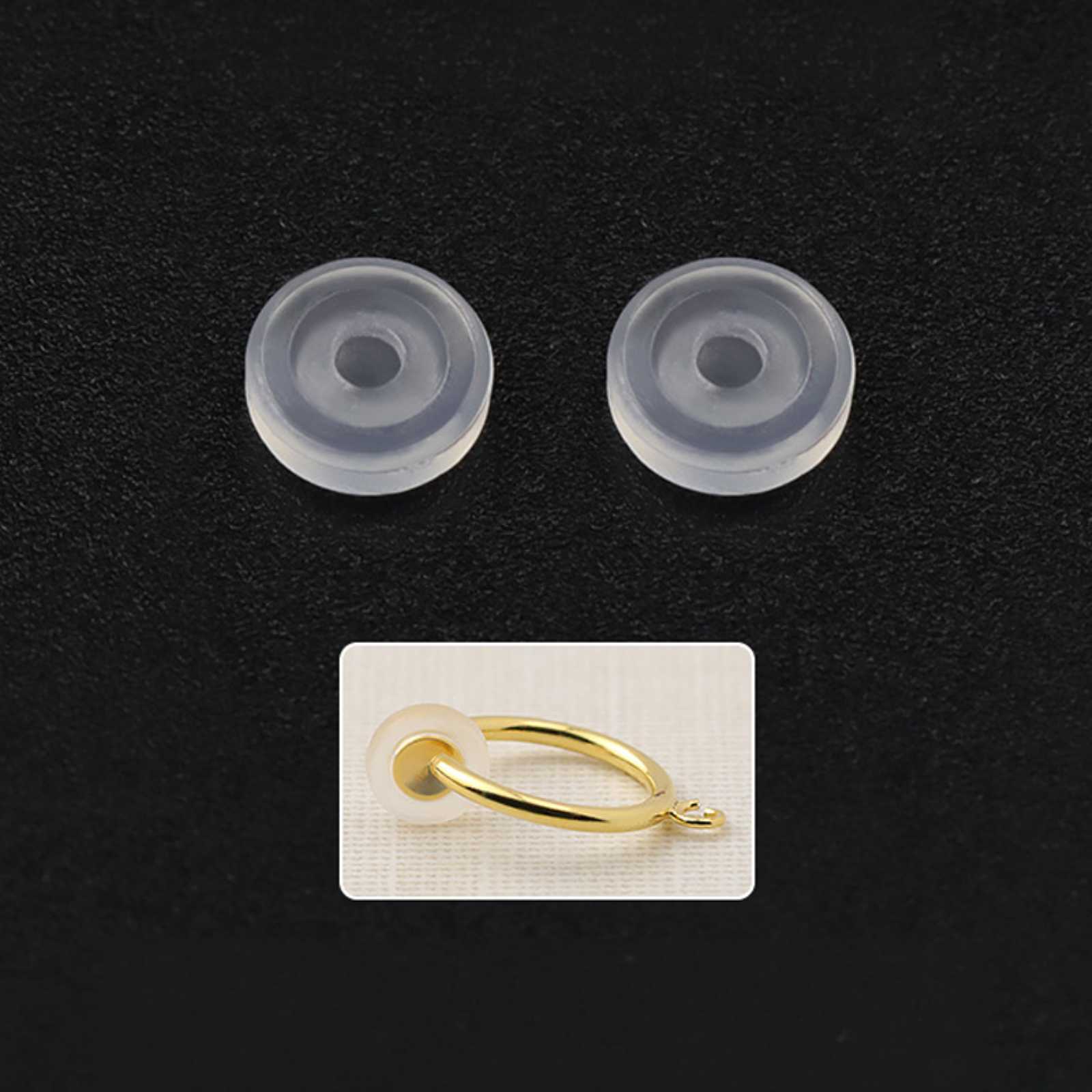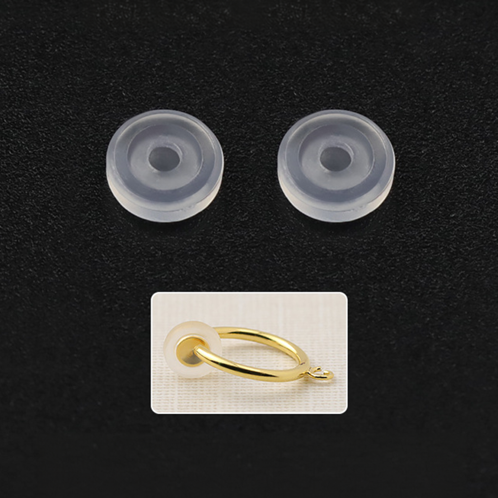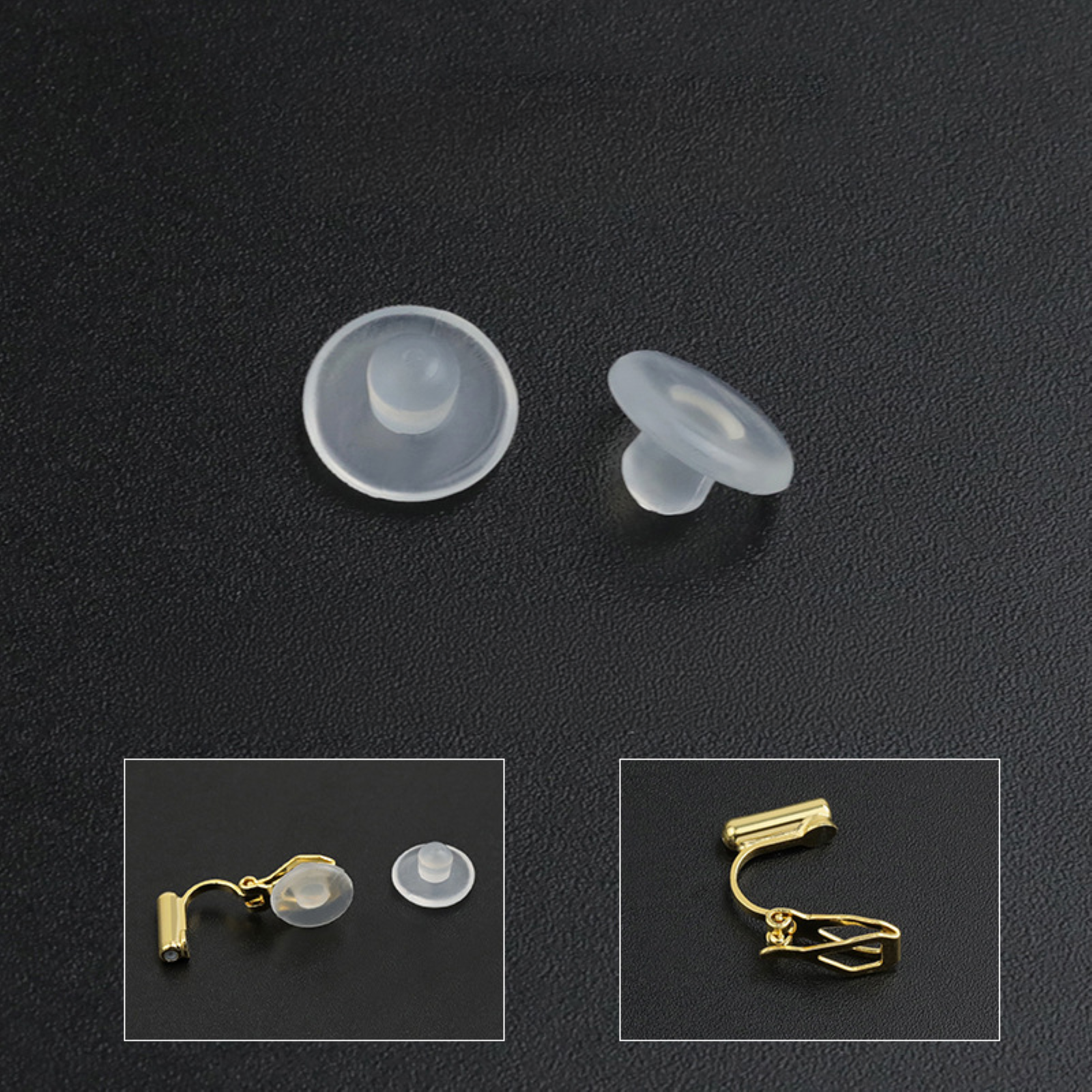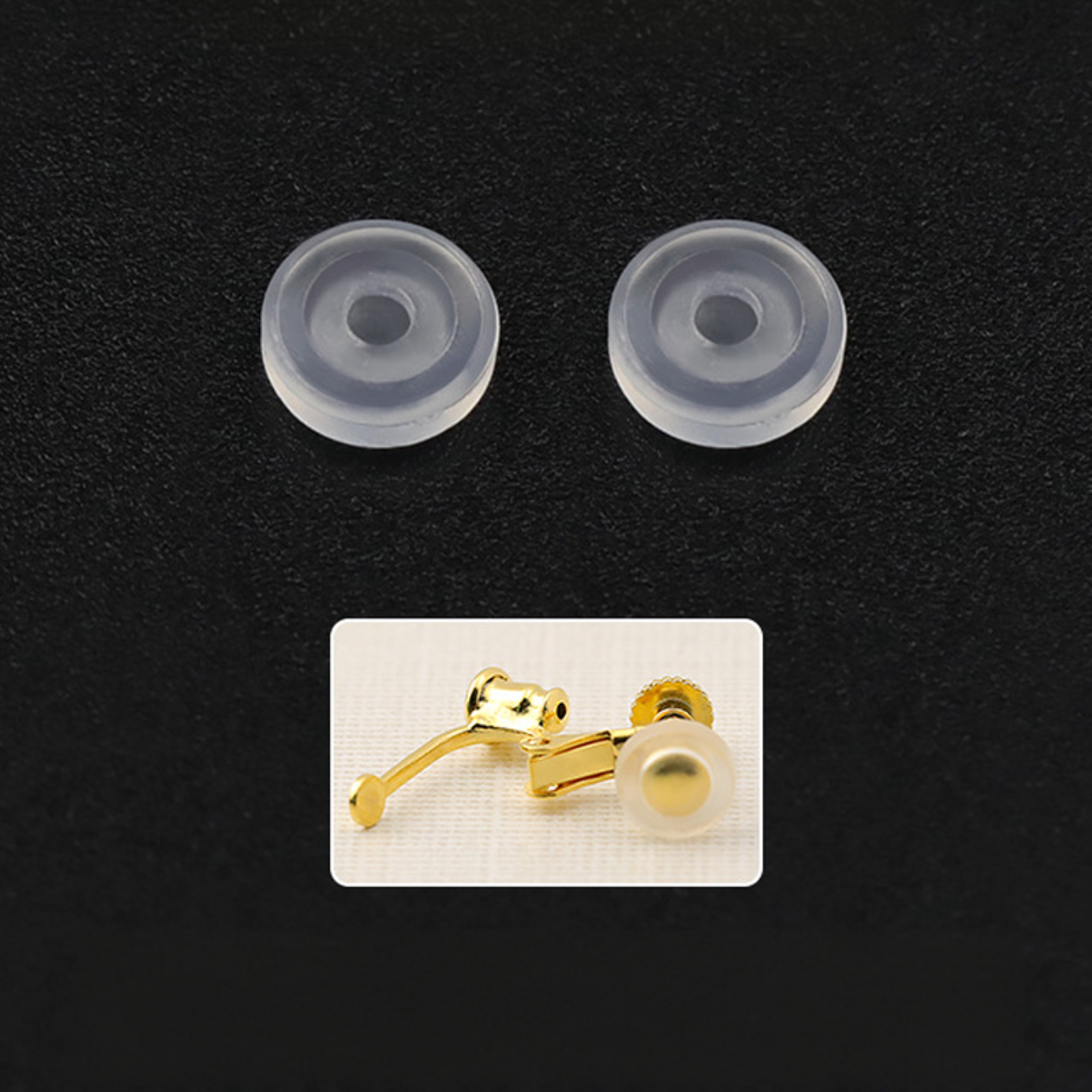 - Pack of 20 silicone pad backs for clip-on earrings.