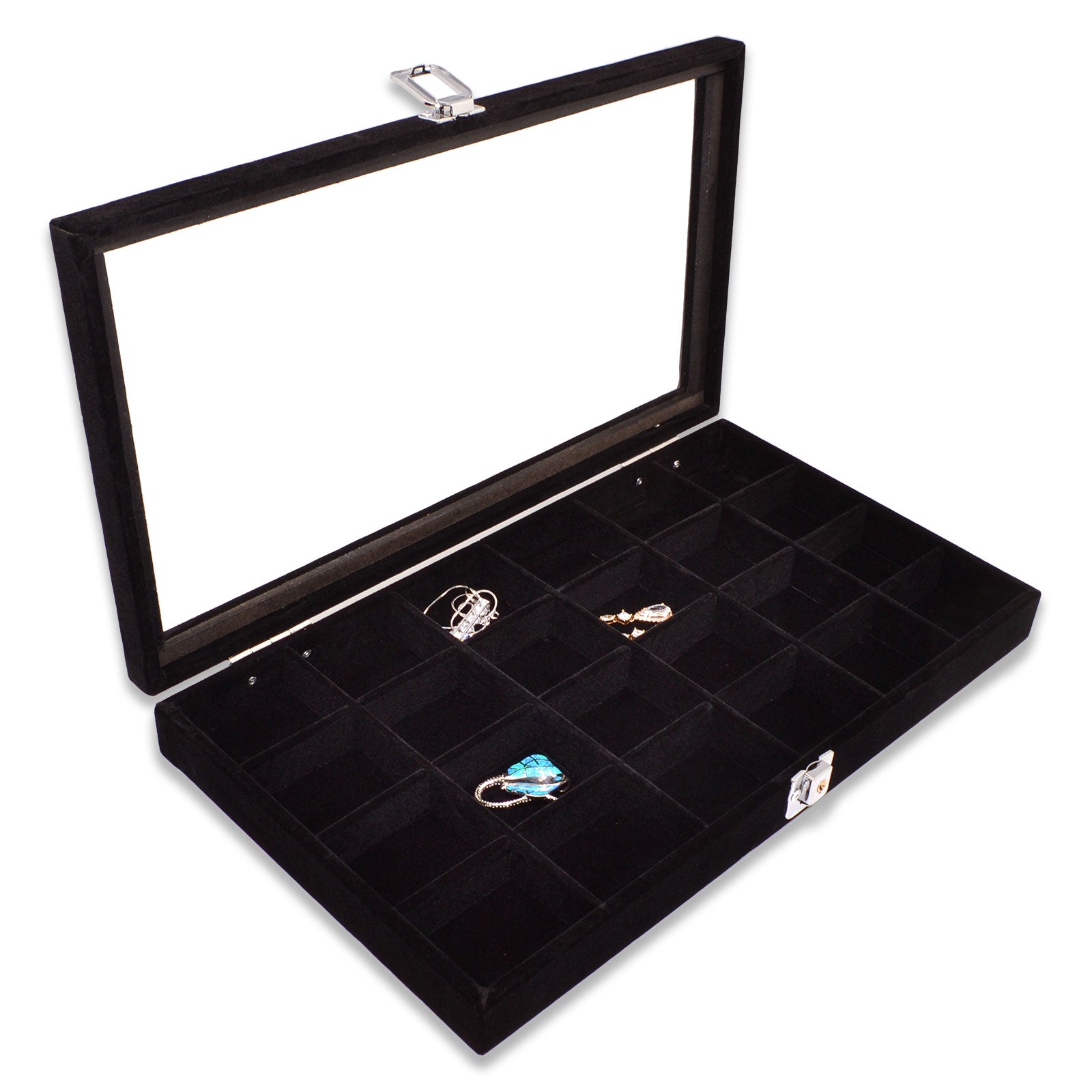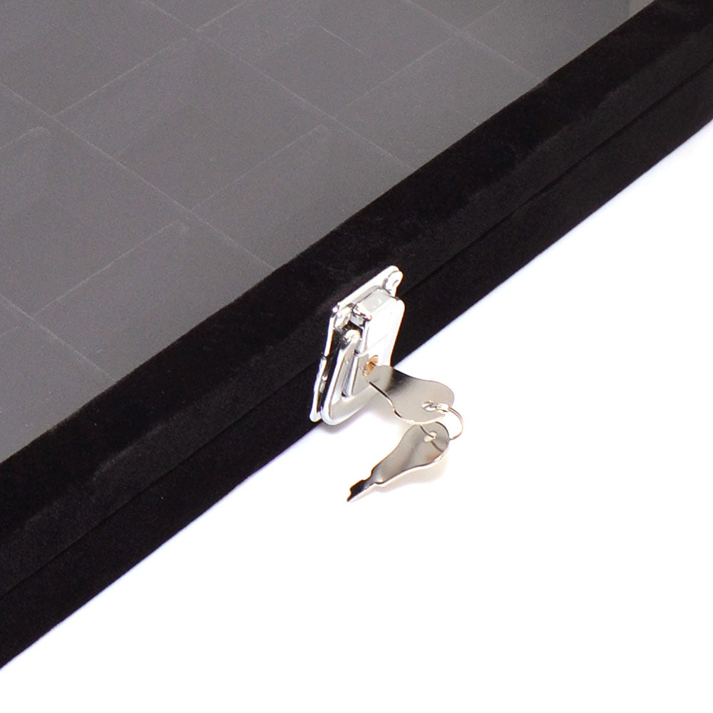 14 3/4" x 8 1/4" 24 Compartment Black Velvet Display Case w/ Glass Top and Key