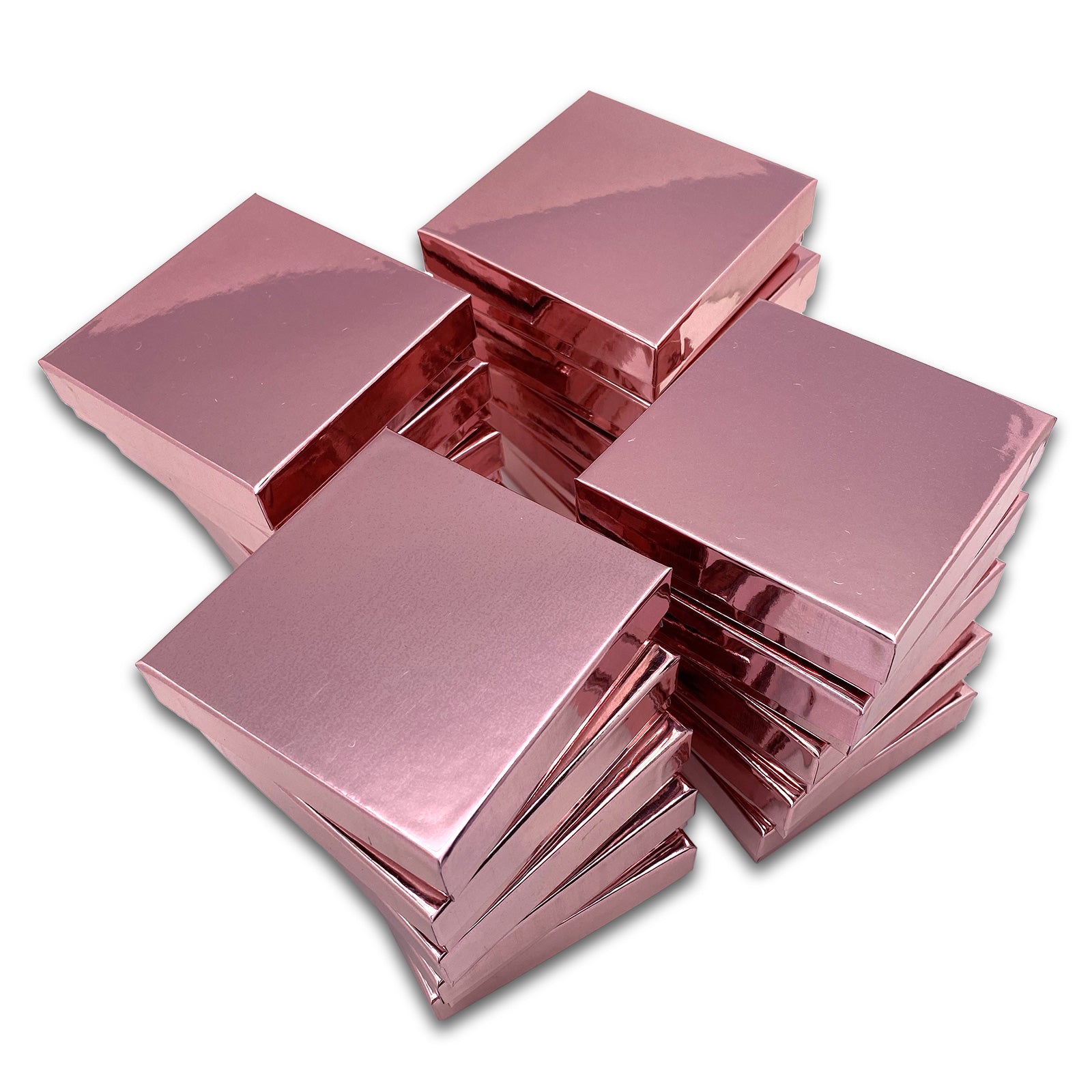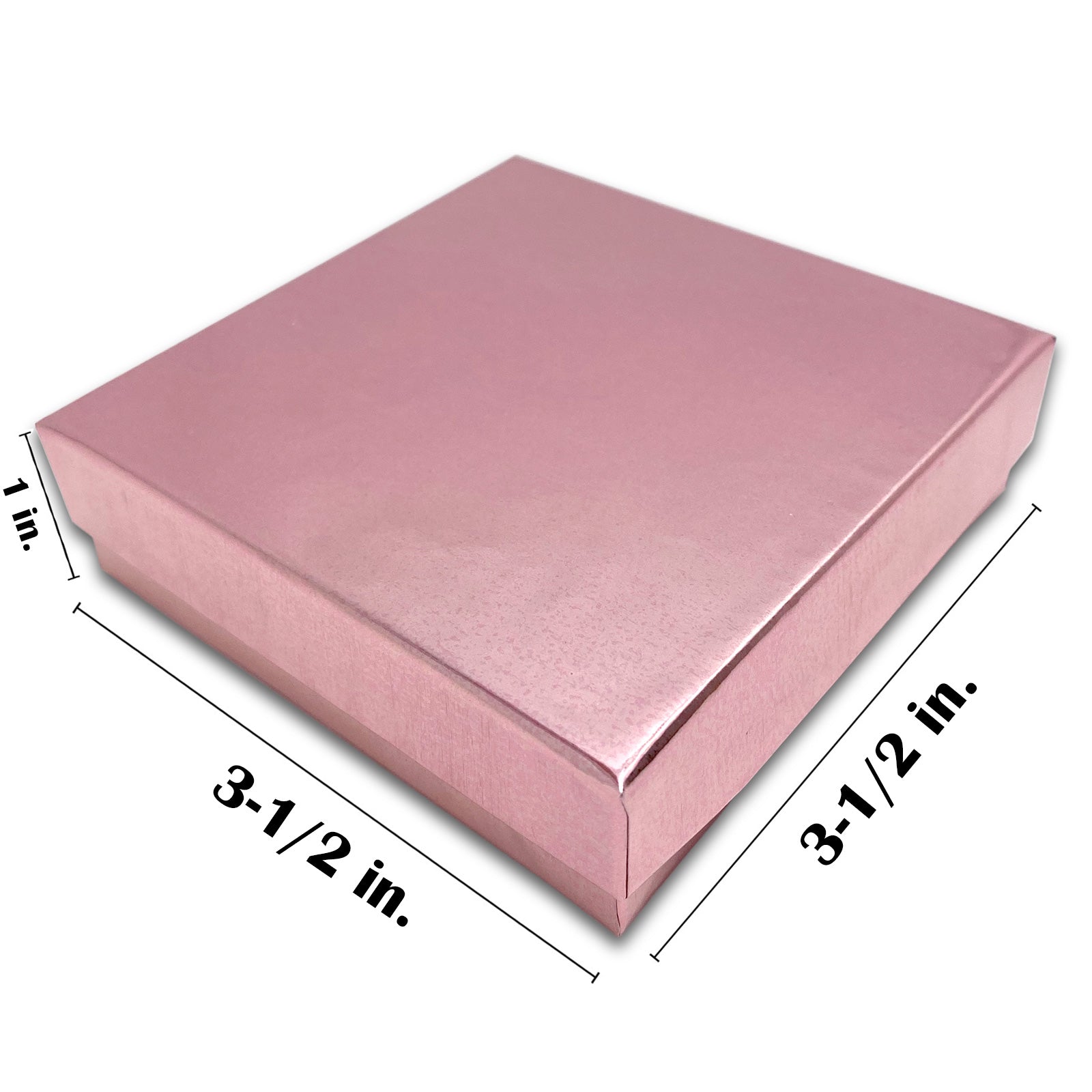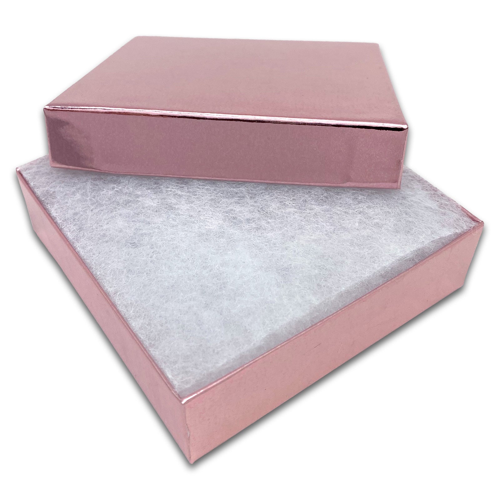 3 1/2" x 3 1/2" x 1" Metallic Rose Gold Cotton Filled Paper Box