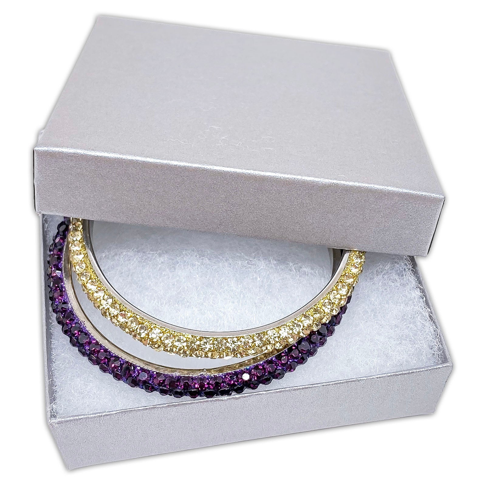 Cotton-filled boxes are available in black, blue, gold, gray, green, kraft, orange, pink, purple, red, silver, teal, yellow, rose gold and more. Visit our Shop by Color page to view all available colors.