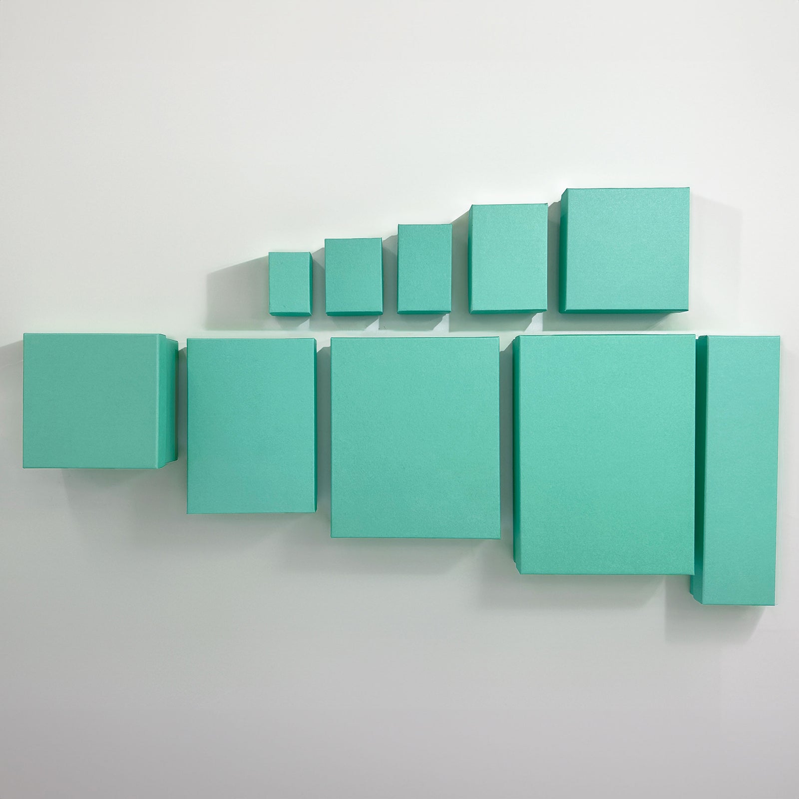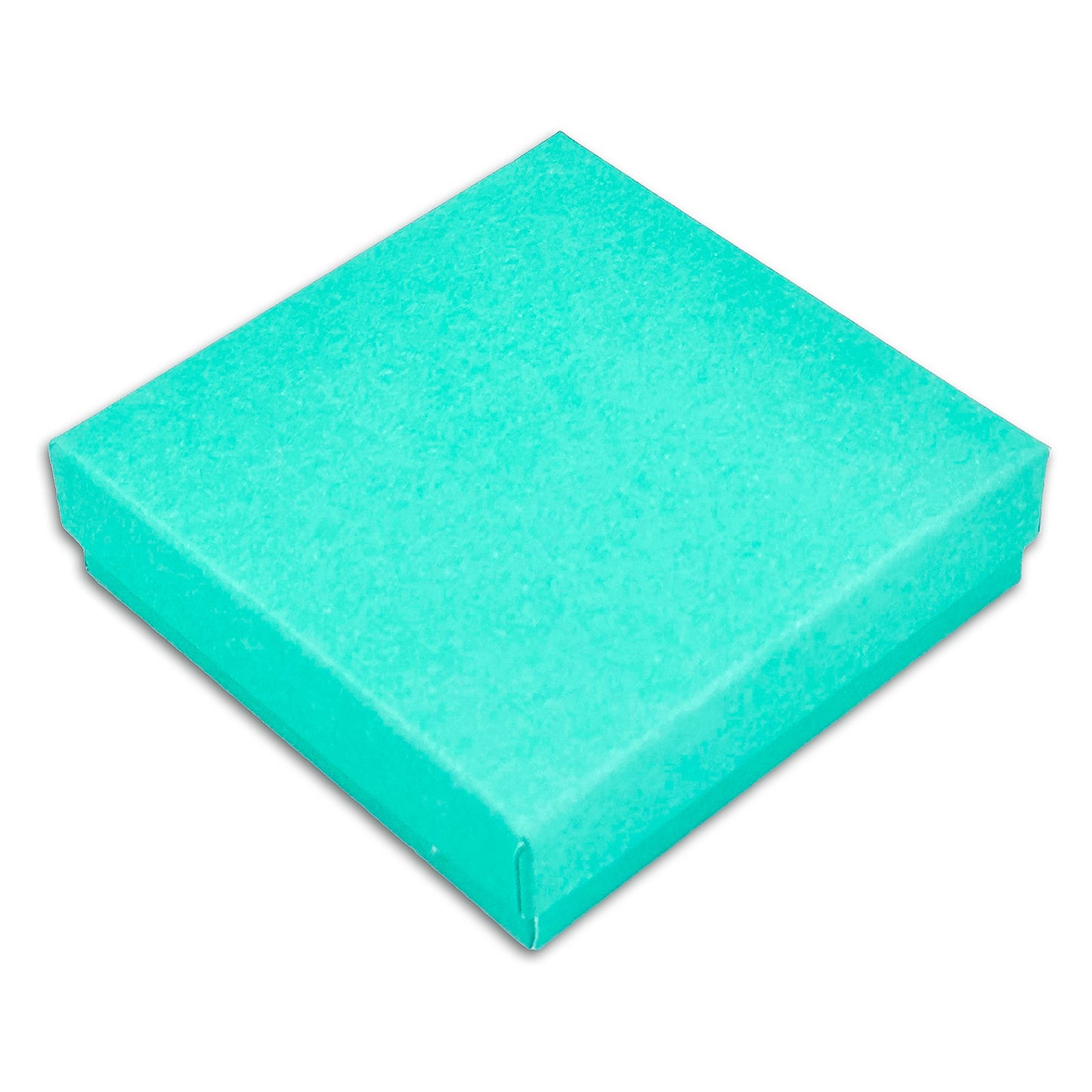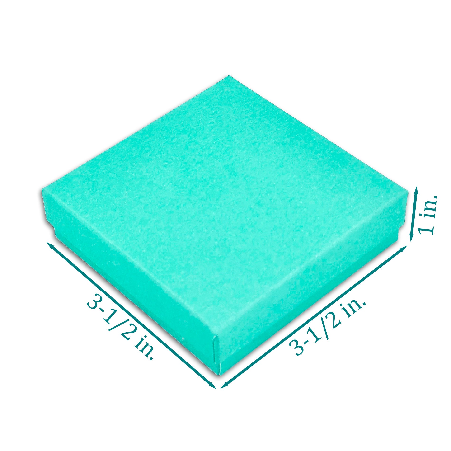 3 1/2" x 3 1/2" x 1" Teal Cotton Filled Paper Box