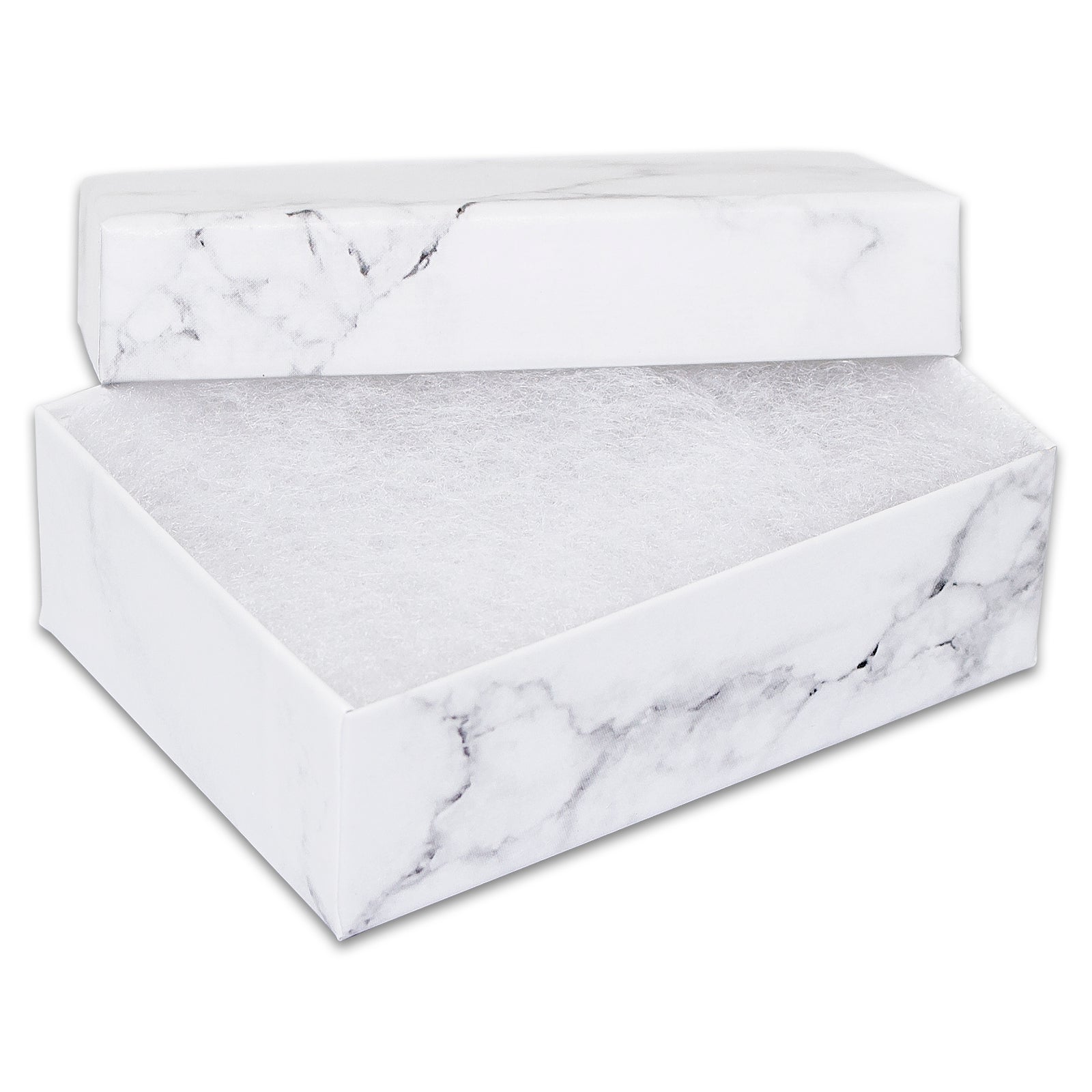 3 1/4" x 2 1/4" x 1" Marble White Cotton Filled Paper Box
