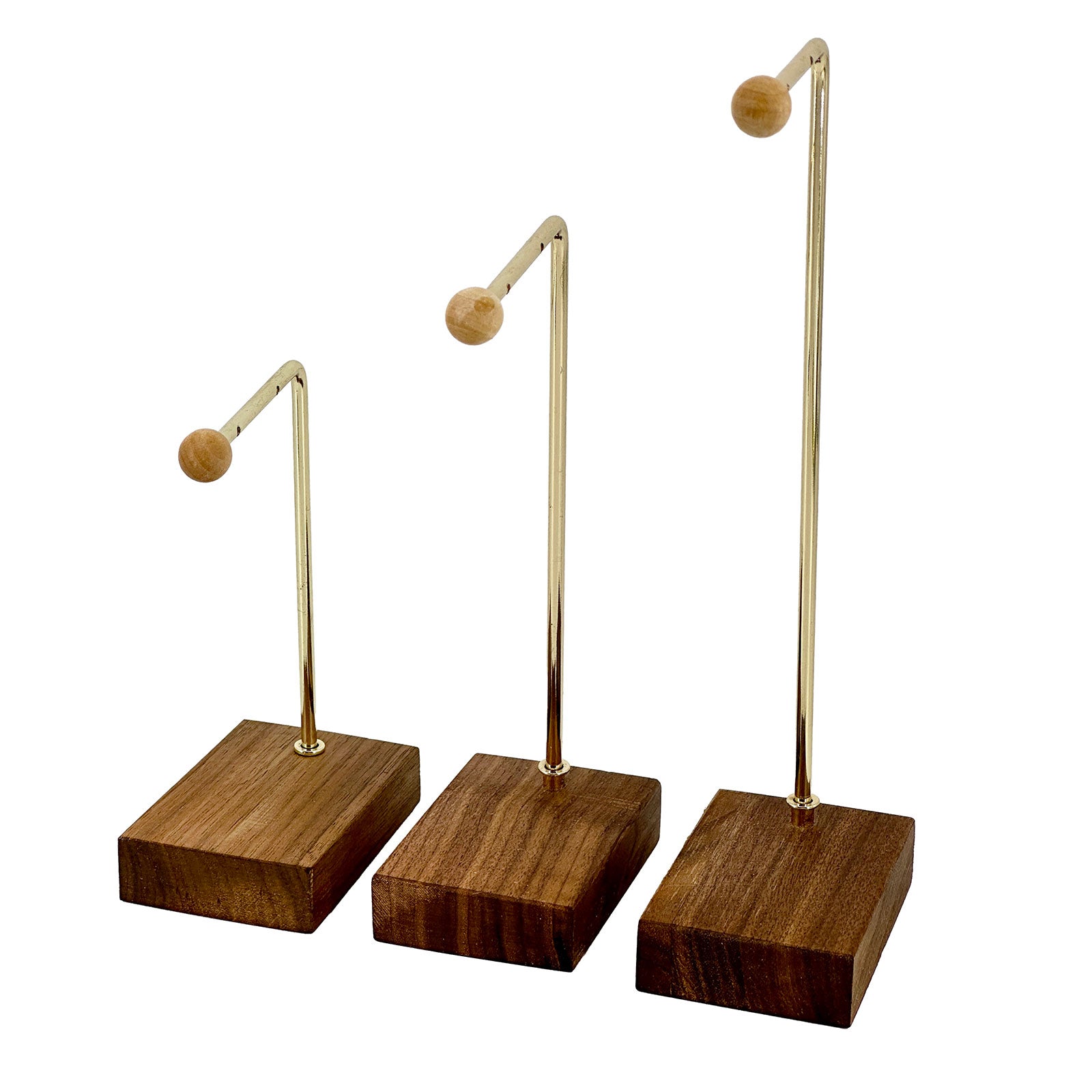 3 Tier Walnut and Gold Jewelry Display Stand Set