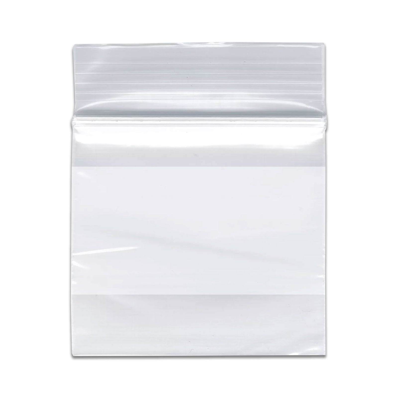 3" x 3" White Block Clear Zip Lock 2 Mil Plastic Bags