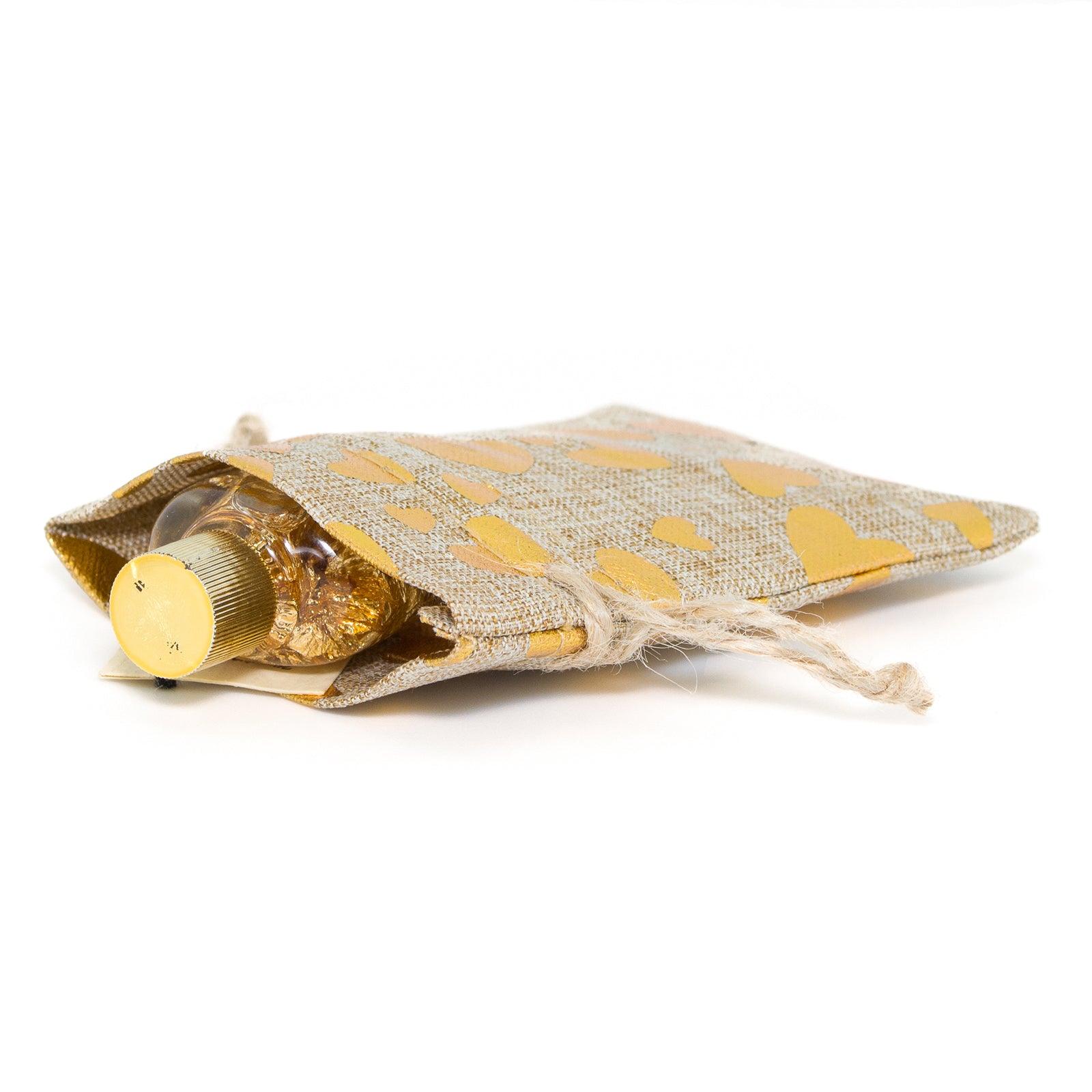 3" x 4" Jute Burlap Gold Heart Drawstring Gift Bags