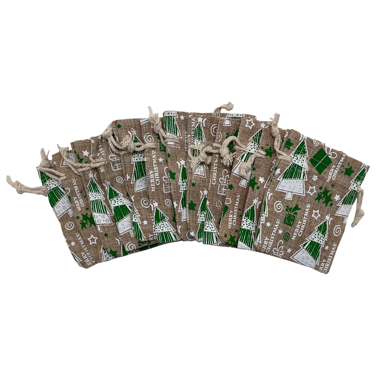 3" x 4" Jute Burlap Green Christmas Tree Drawstring Gift Bags
