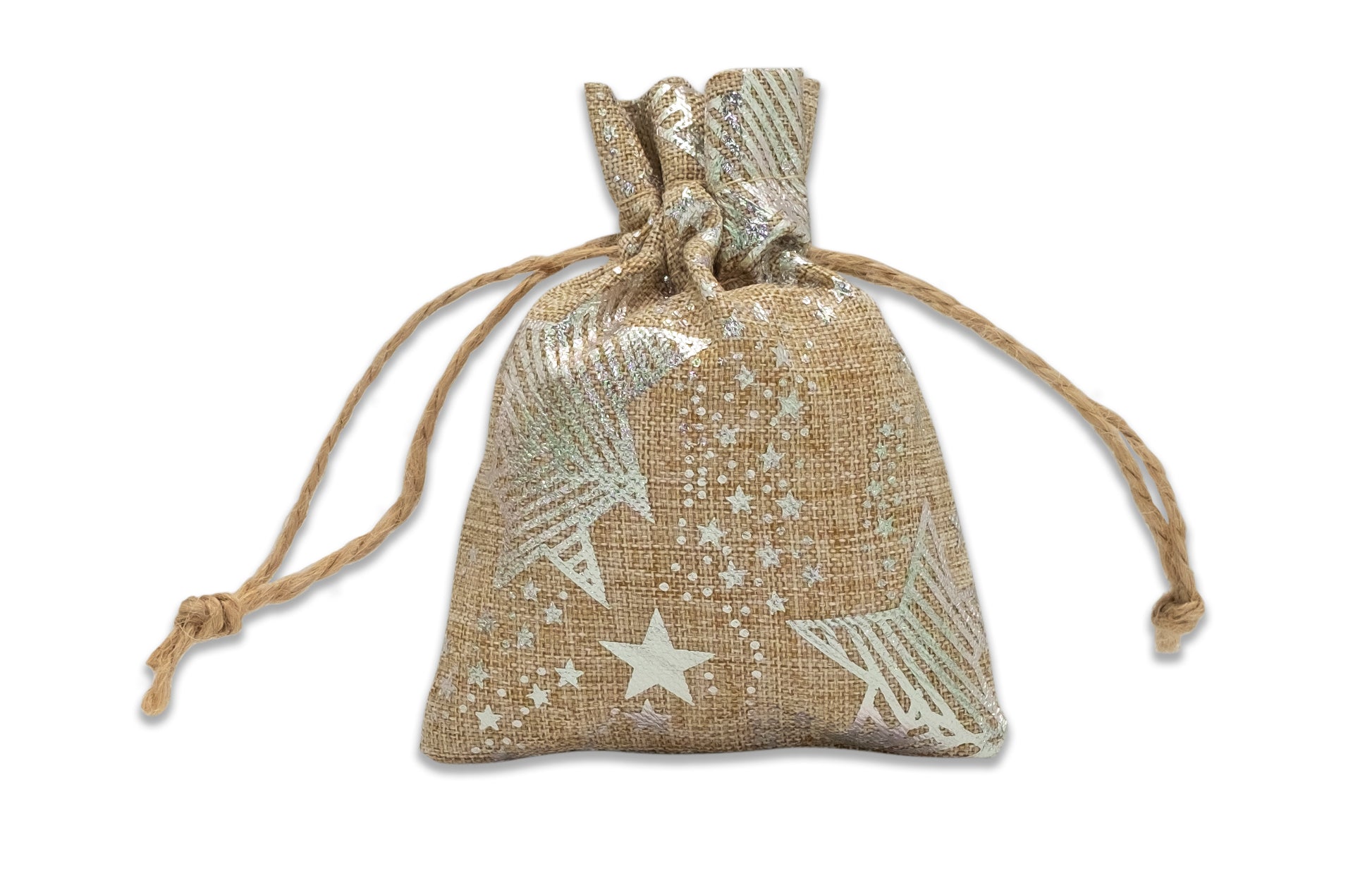 3" x 4" Jute Burlap Silver Star Drawstring Gift Bags
