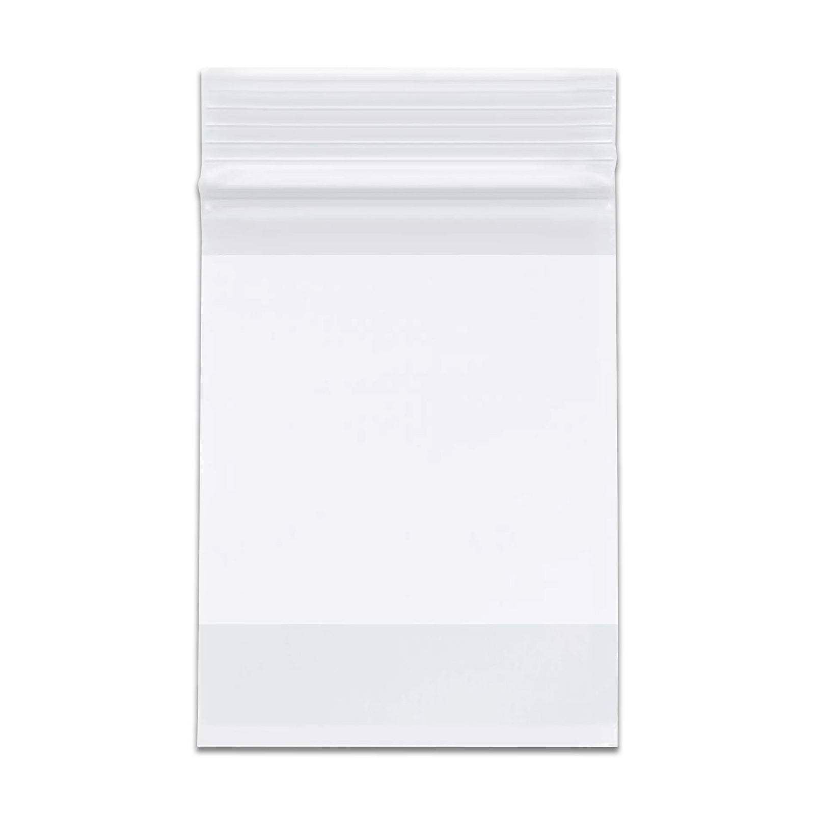 3" x 4" White Block Clear Zip Lock 2 Mil Plastic Bags